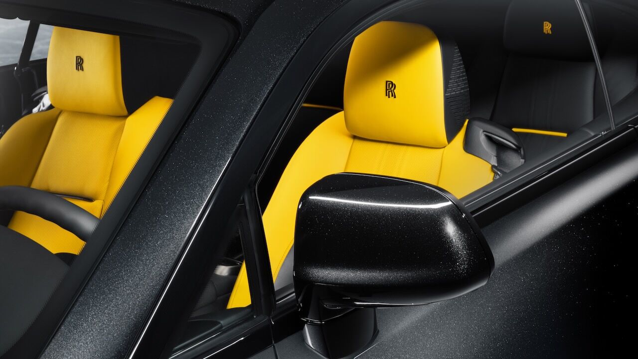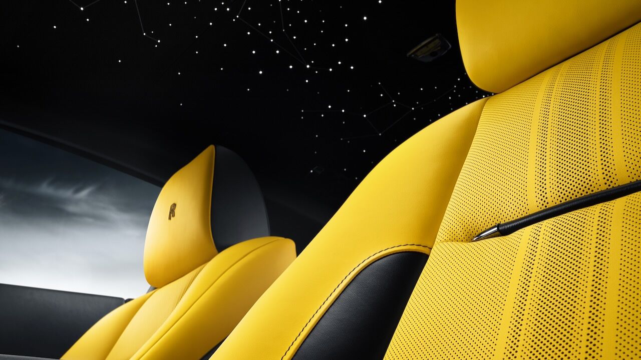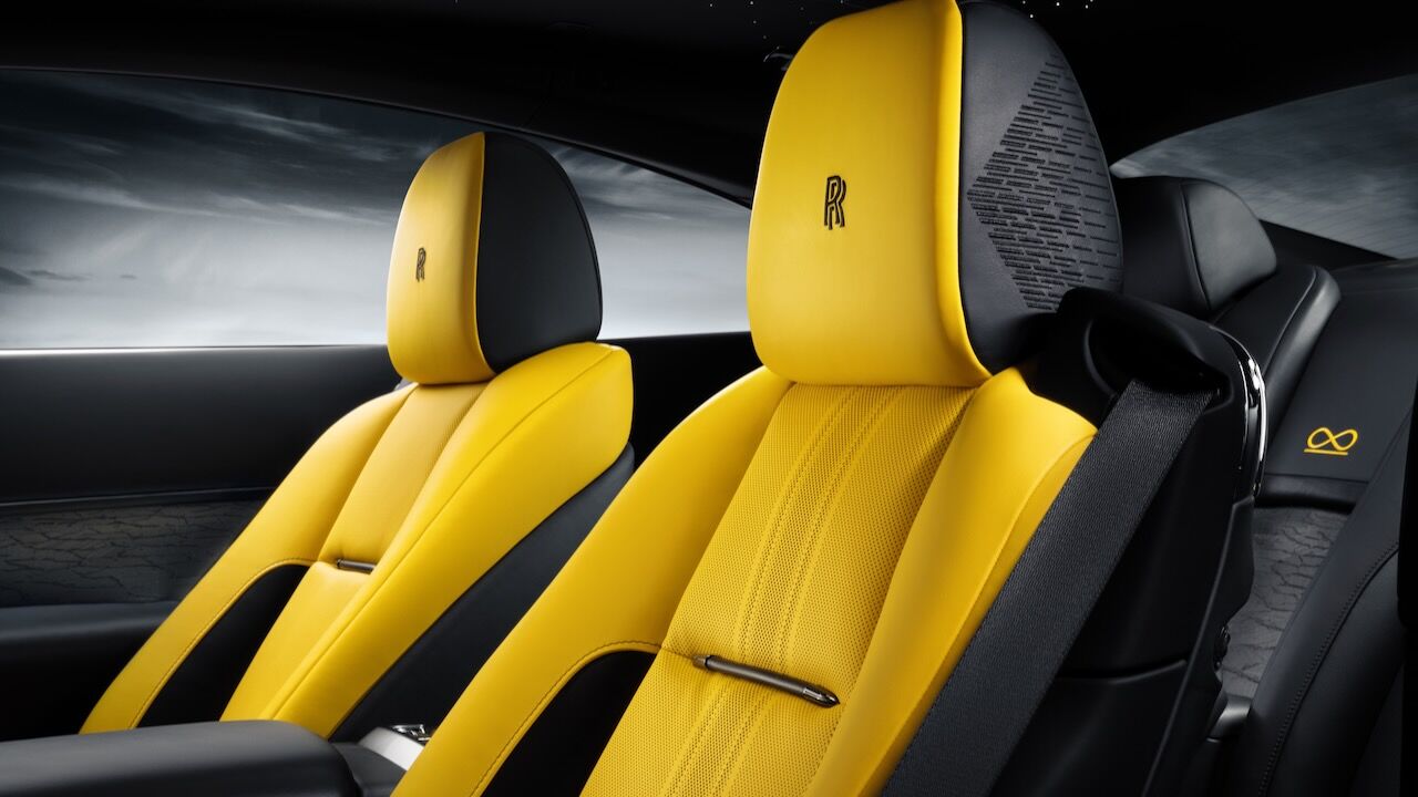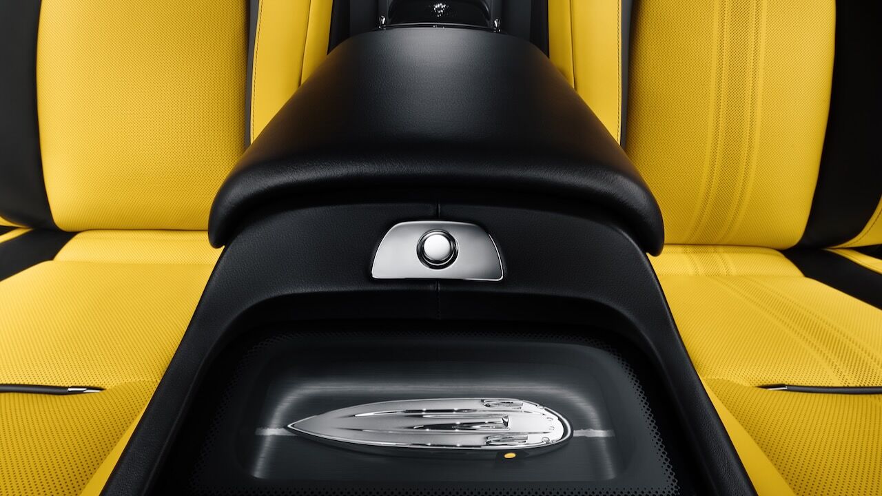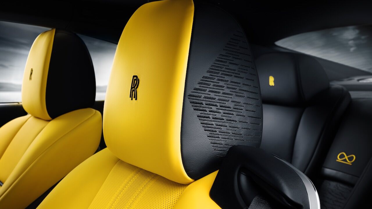 El interior del Rolls-Royce Black Badge Wraith Black Arrow no se queda atrás. El salpicadero es una obra de arte en sí misma, pues recibe un grabado sobre aluminio que representa la mecánica V12. Continúa con otros detalles como las puertas revestidas en madera Black Wood de poro abierto y sumando más de 320 piezas de marquetería multidireccional y láser para representar las Salinas de Bonneville donde se batieron los récords. La tapicería estrena el cuero Club, que destaca por su colorido y por el contraste que consigue con el resto de elementos.