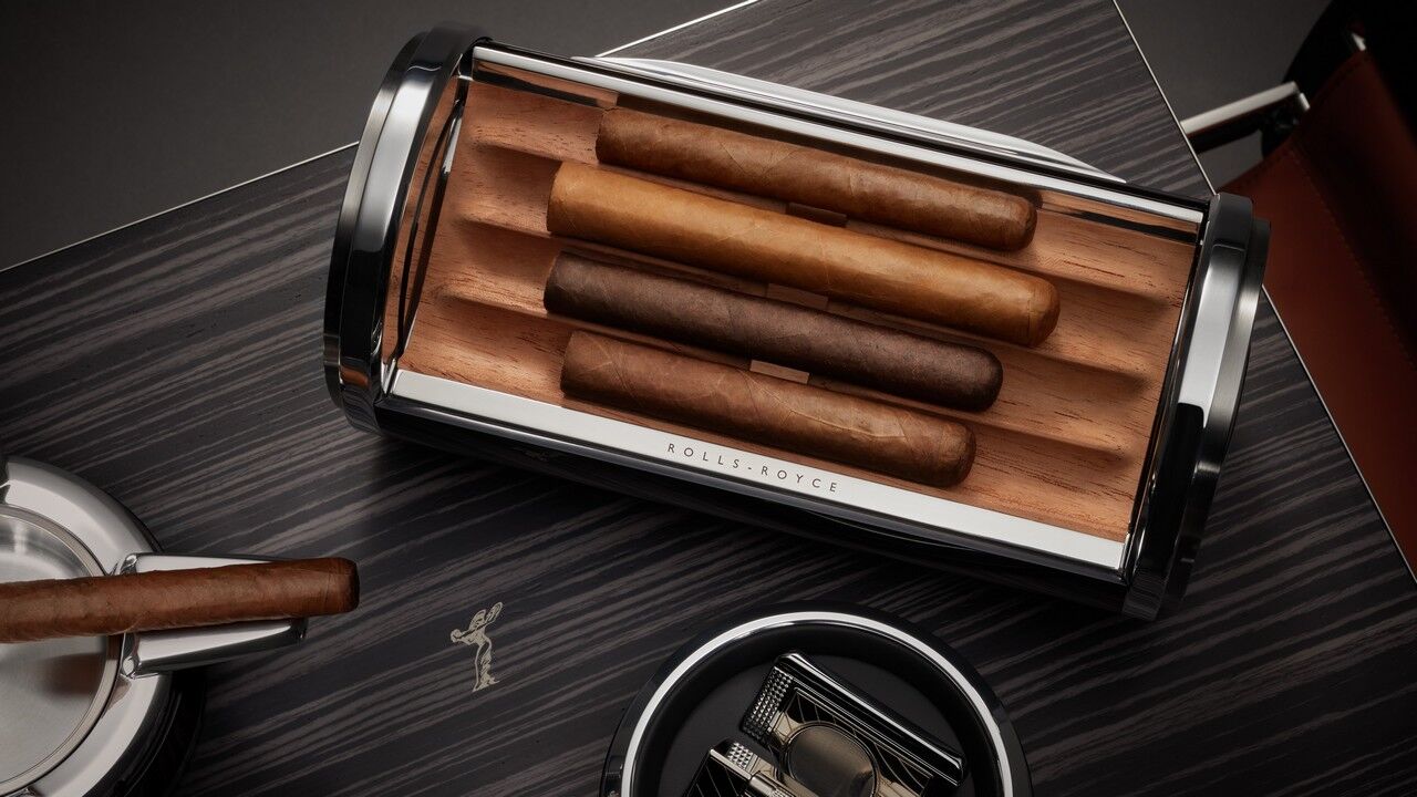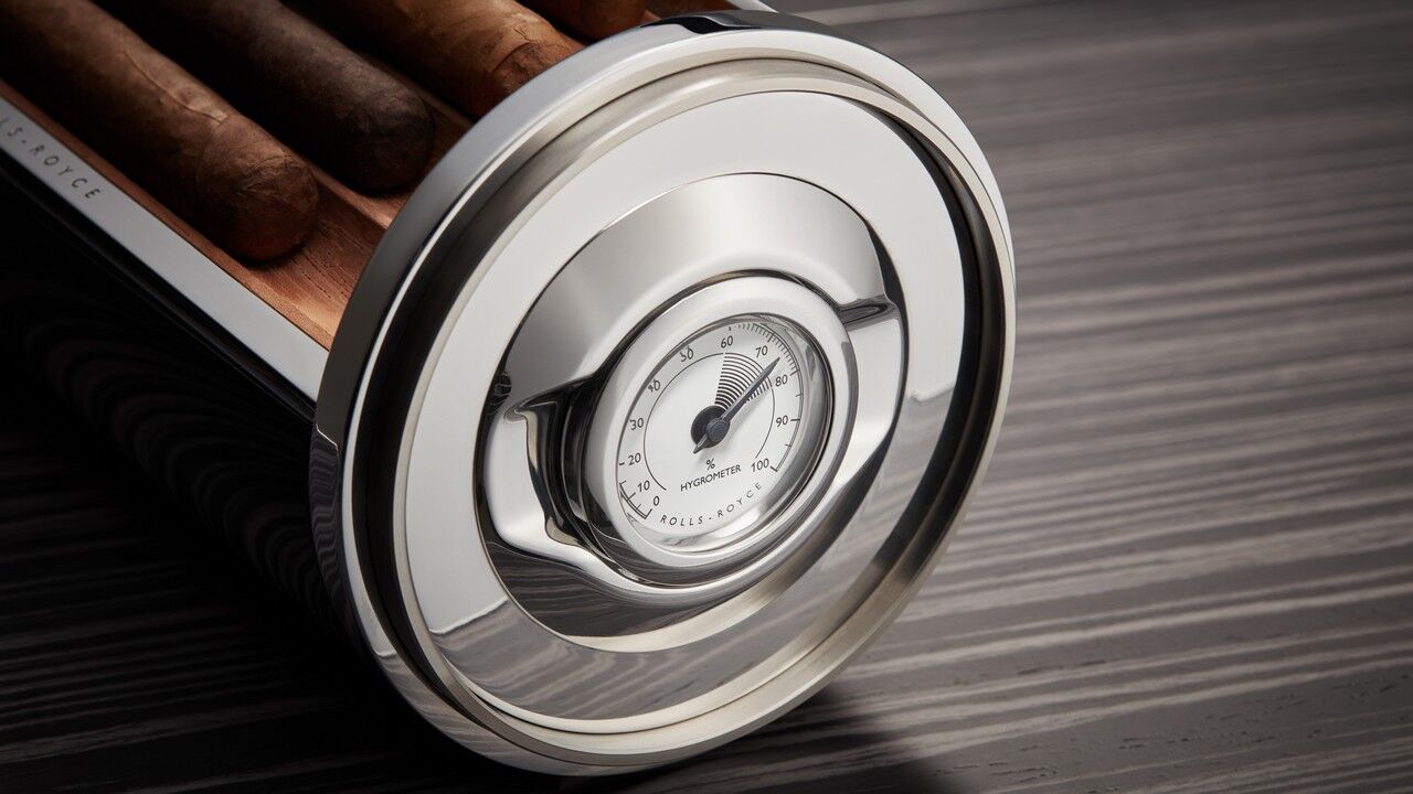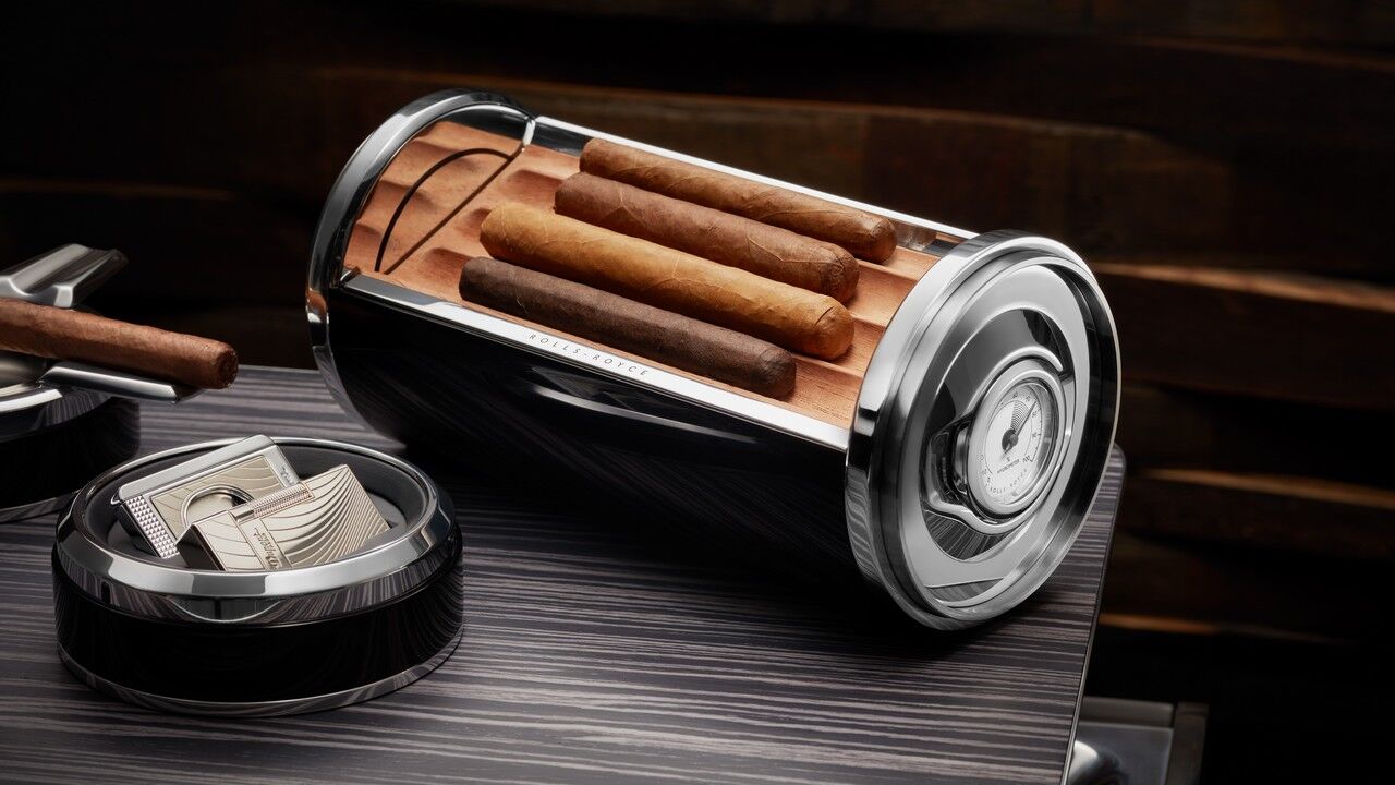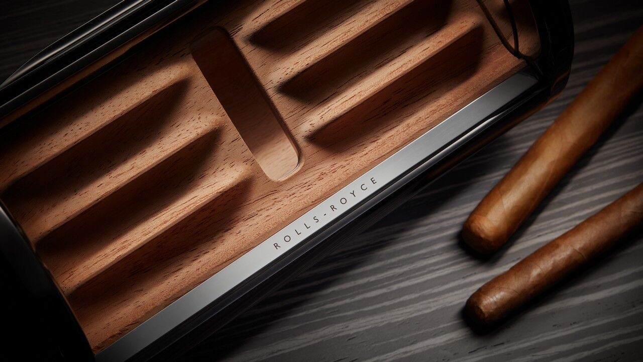 Una variedad de accesorios se presenta de forma mecánica, abriéndose como las puertas de un autobús (si Rolls-Royce fabricase uno). Cuando se abren, los vasos de whisky tallado a mano con el monograma “RR” giran hacia afuera y revela una alforja para una botella que puede adaptarse a diferentes tamaños. Un cierre metálico mantiene dicha botella en su lugar magnéticamente. Para los conocedores de puros, un humectador de madera de cedro español puede acoger puros a una humedad determinada monitoreada por un higrómetro inspirado en Rolls-Royce.