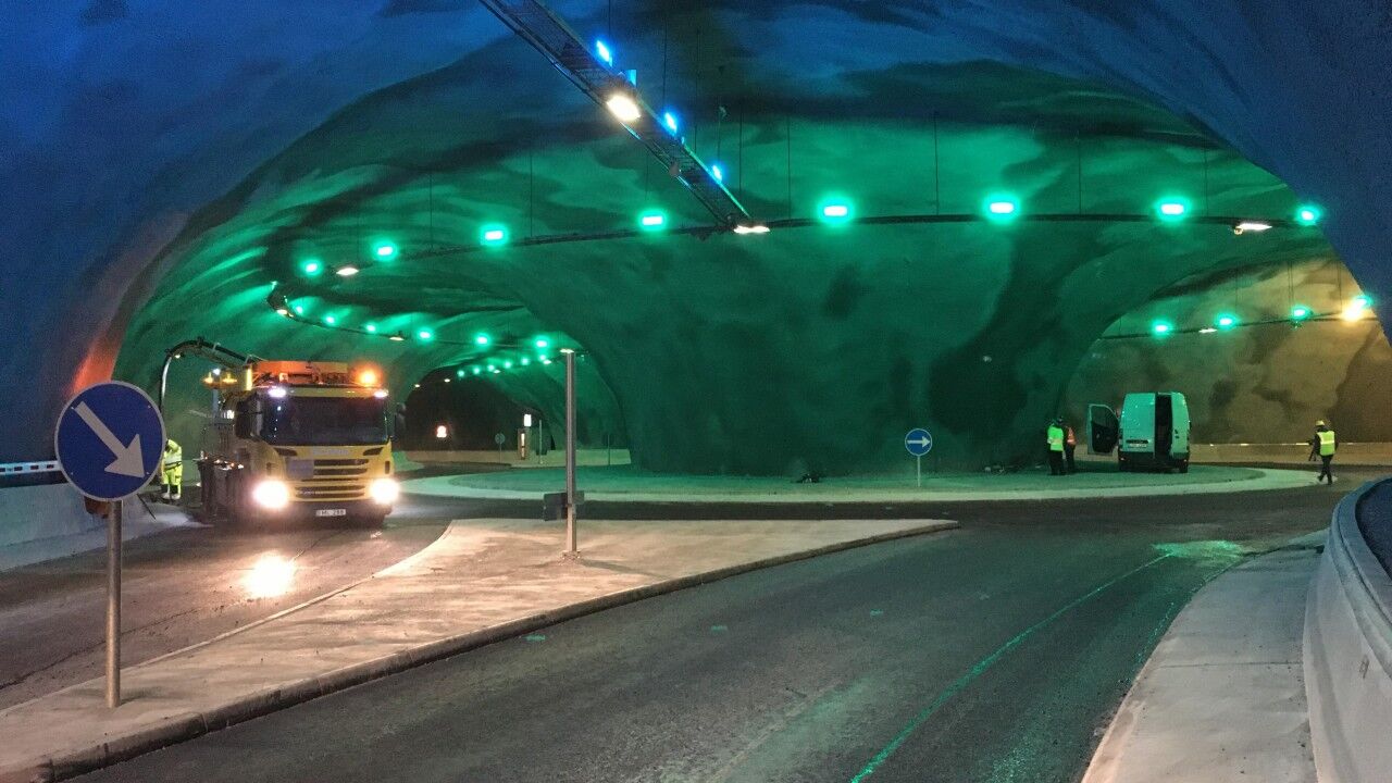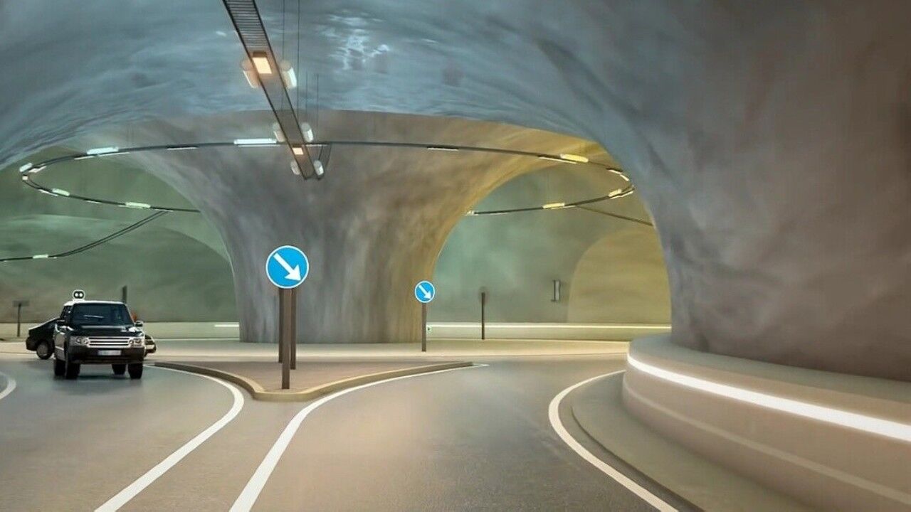 Para garantizar la seguridad de quienes utilizan el túnel, la pendiente más pronunciada no es superior al 5 % de desnivel, mientras que el punto más profundo del túnel está a 186 metros por debajo del nivel del mar. El trabajo comenzó a principios de 2017 desde puntos opuestos de la red, y los tres caminos convergieron en junio de 2019. El acabado de la superficie de las paredes del túnel y la forma en que está iluminado sugiere que estás conduciendo bajo capas de hielo y agua, lo que lo hace realmente interesante frente al clásico hormigón con luz anaranjada.