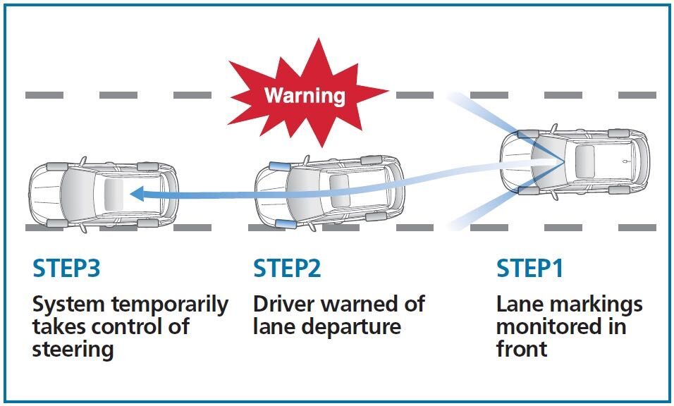 Avisa del abandono de un carril... y corrige la trayectoria si no ha sido indicada con los intermitentes. Funciona entre 60 y 175 km/h y corrige de forma automática. Su acción dura diez segundos y no permite soltar las manos del volante durante más de 15 segundos, ya que hay un sensor en el volante que detecta si el conductor realiza correcciones (no en el aro, sino en la base del mismo).