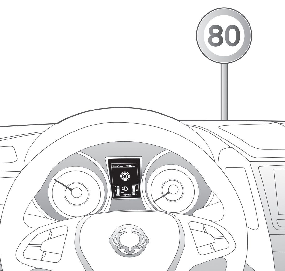 Es capaz de reconocer determinadas señales de tráfico (límites de velocidad, prohibición de adelantamiento y fin de la limitación) desde 10 a 130 km/h. Las reproduce durante 5 segundos en el cuadro de instrumentos.