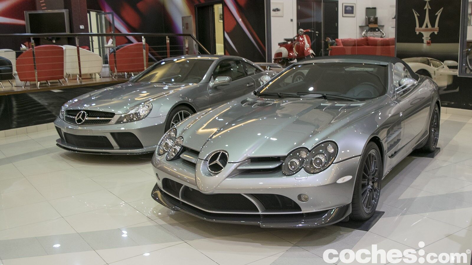 Dejando atrás los Ferrari seguimos con dos superdeportivos de los 90. Mano a mano aparecen el Maserati MC12 y el Mercedes-Benz GLK-GTR Roadster (solo se hicieron cinco unidades), de los más apreciados de la colección. Con ese ejemplar se entra en la zona Mercedes, pues le siguen dos Mercedes-Benz SLS AMG GT3 (uno es una 45th Anniversary Edition), un Mercedes-Benz SLR Stirling Moss, dos Mercedes-Benz SLR McLaren 722 (uno versión S) y un Mercedes-Benz SL65 AMG Black Series. Entre ellos se cuela un llamativo un McLaren P1.