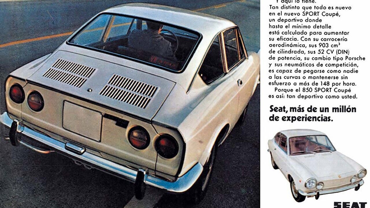 1967 también trajo consigo una vertiente de corte aspiracional, el SEAT 850 Coupé, con una silueta más sugerente y dos puertas. Junto al Alpine A110 fabricado por FASA Renault, era el único deportivo de fabricación nacional. Desde su lanzamiento, contó con el motor de 47 CV, lo que le otorgaba una velocidad máxima de 140 km/h, en parte gracias a la carrocería de tipo fastabck que ayuda a reducir la resistencia aerodinámica.
