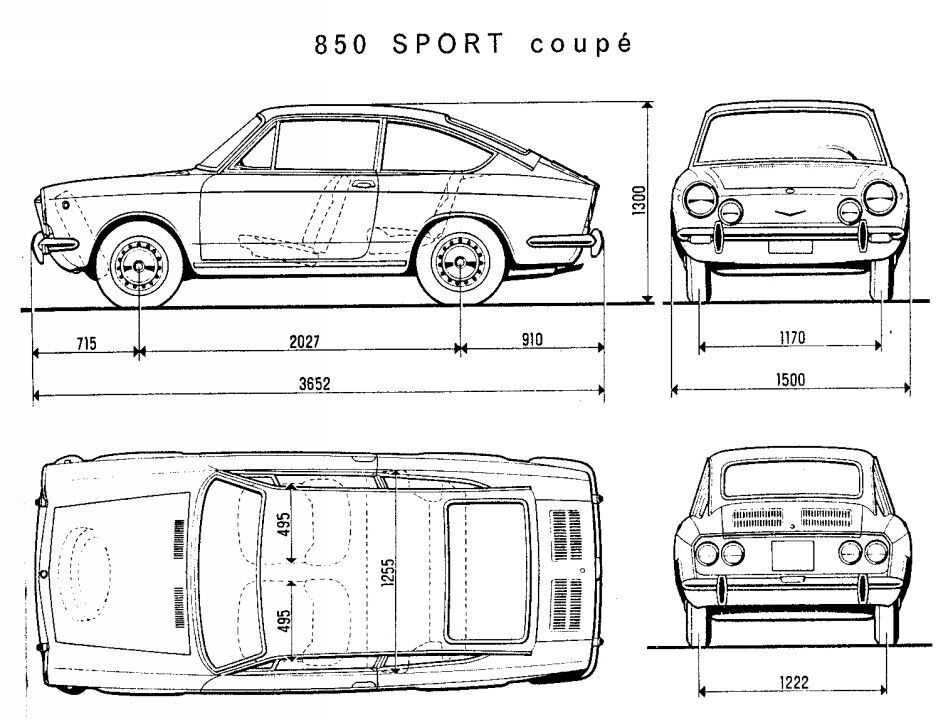 Gran parte de la estructura general era exactamente igual, algo patente si nos fijamos en las ventanillas y en la línea del techo. El encargado del diseño del 850 fue Dante Giacosa (entonces jefe de proyectos de FIAT y diseñador del 600), destacando un frontal cuadrangular más alto, farosde mayor tamaño, un parabrisas más amplio, y una línea más aerodinámica gracias al rediseño de la parte posterior, que lo perfilaba hacia un vehículo de dos volúmenes.