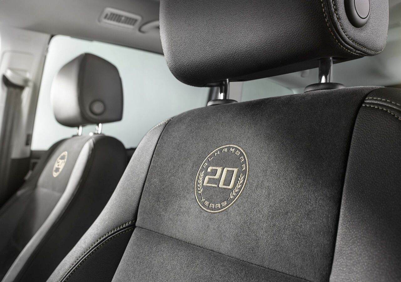El Seat Alhambra 20 Aniversario se diferencia del resto de la gama por elementos como sus llantas de aleación de 17 pulgadas en color negro brillante, complementadas con los faros de xenón, lunas trasera y laterales tintadas y el amplio techo panorámico deslizante. El interior se caracteriza por la inconfundible tapicería en Alcántara oscuro con costuras en hilo de seda de color amarillo claro. El conductor la disfrutará especialemente, ya que su asiento contará con la función masaje, perfecta para afrontar viajes largos. Hay también logotipos «20 Aniversario» en los umbrales de las puertas, respaldos de los asientos...