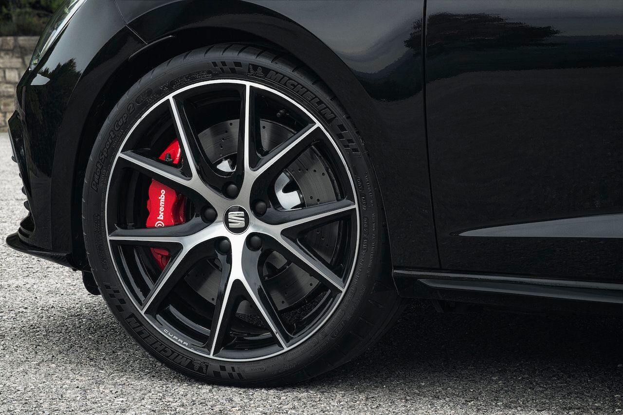 A nivel estético destacará por los «Aero Pack» y «Performance Pack». Con el primero monta el splitter delantero, faldones laterales y difusor trasero en fibra de carbono, además de un sistema de escape con cuatro salidas y sonoridad ‘Cupra Soung’. Con el segundo paquete suma otros elementos como las llantas de 19 pulgadas (mismo diseño que el Cupra R) calzadas con neumáticos Michelin Pilot Sport Cup 2 y con frenos sobredimensionados y con pinzas Brembo en color rojo.
