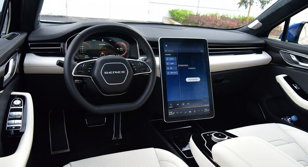En el interior, el Seres SF5 lucirá una gran pantalla táctil de 17 pulgadas presidiendo el salpicadero, muy al estilo de los de Palo Alto, con un cuadro de instrumentos completamente digital. Contará con una iluminación ambiental compuesta por 64 puntos de diodos LED, ofrecerá 30 sistemas de ayuda a la conducción (pasiva y activa) y un cargador interno que gestiona el flujo de energía interno para cargar las baterías de forma segura. Además, incorporará un sistema V2V para que dos vehículos eléctricos puedan ceder su carga de uno a otro.