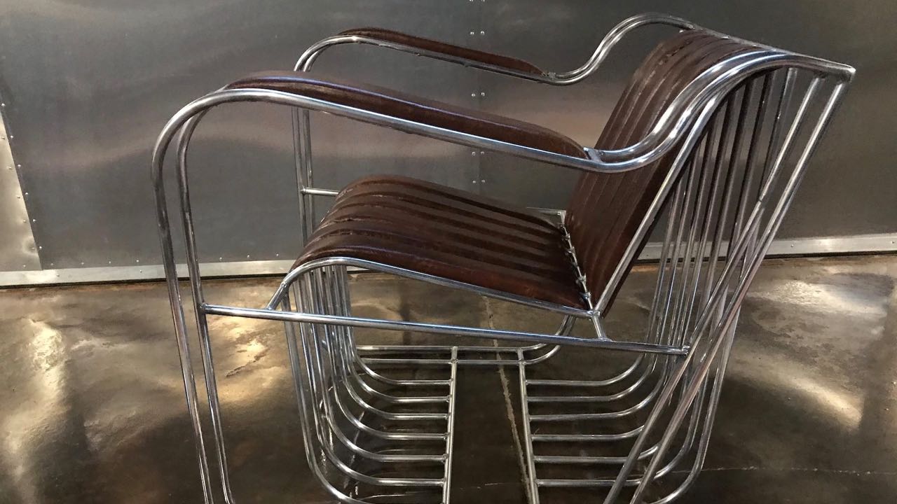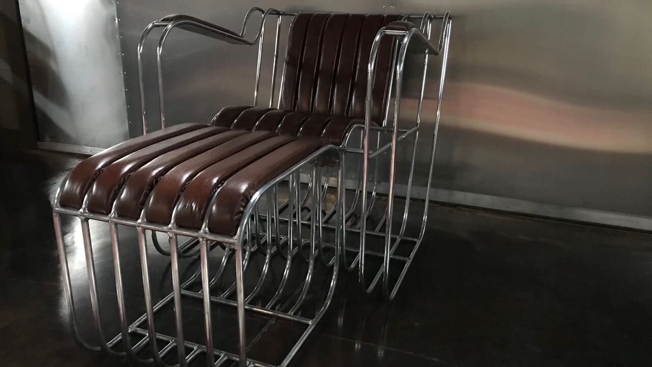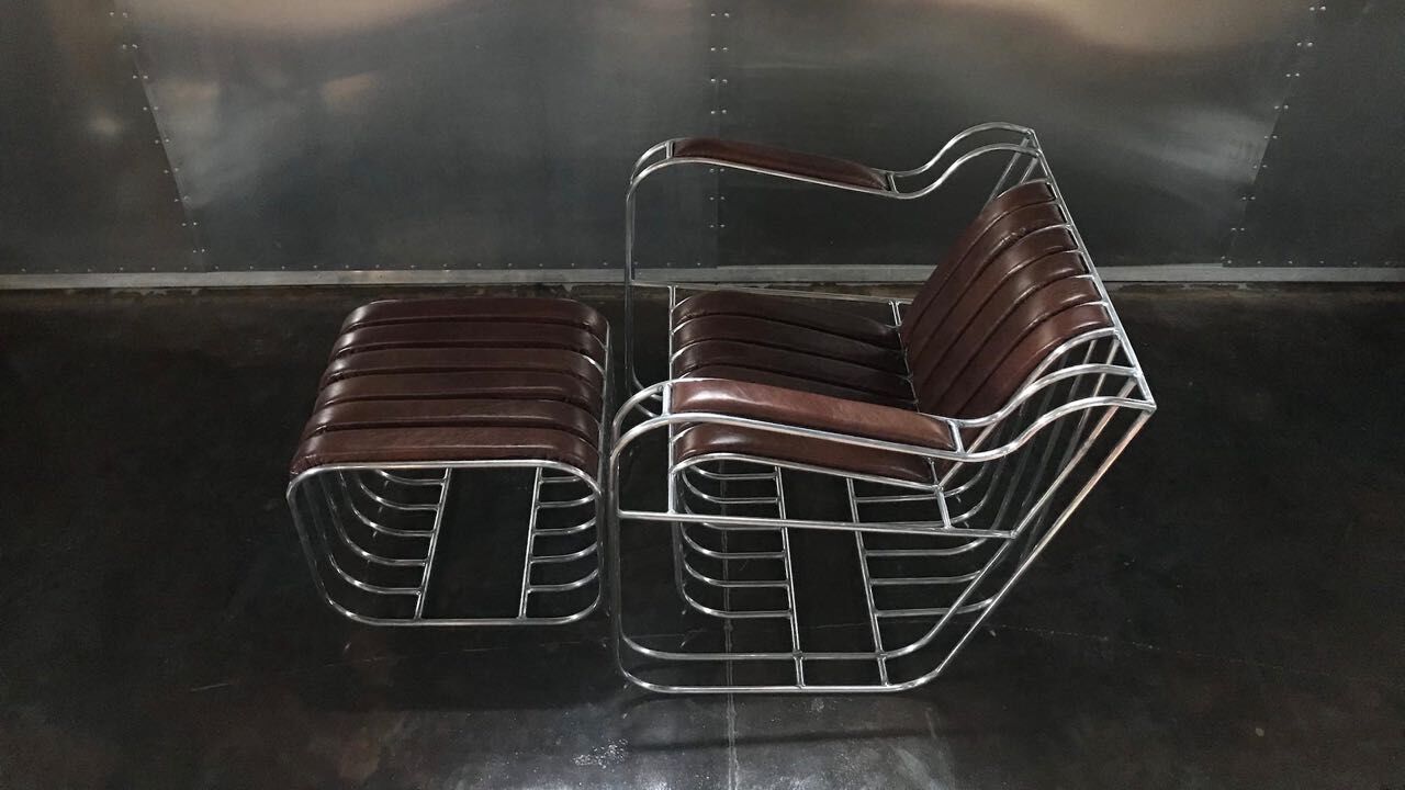 Cada sillón Runge está hecho a mano con tubos de aluminio por Christopher Runge Superleicht, soldados en un marco que forma un cómodo sillón tapizado de cuero.