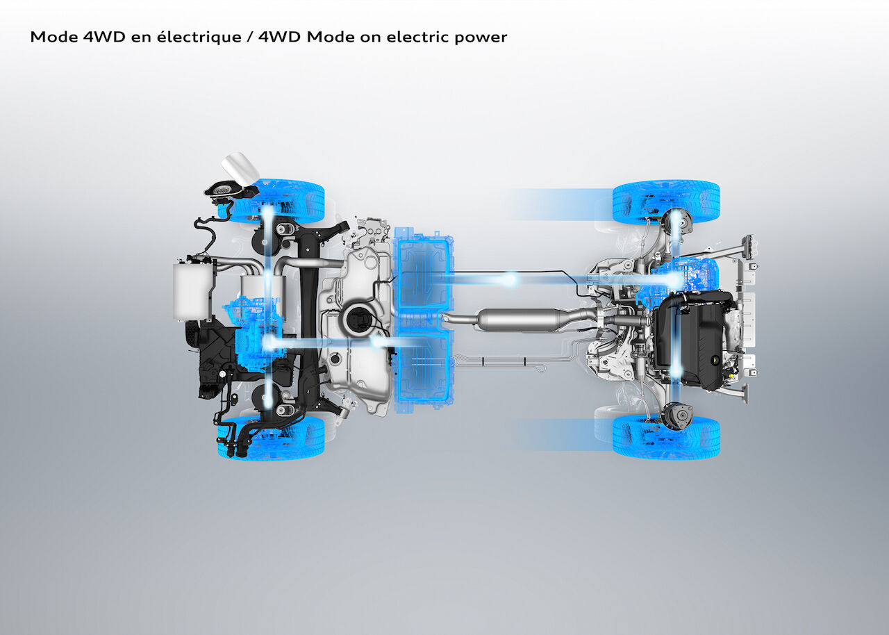 La variante Hybrid4 es la que llegará en el Peugeot 3008 y combina el motor 1.6 PureTech (de 225 CV) con dos motores eléctricos. El resultado son 300 CV de potencia y tracción en ambos ejes, también mediante la transmisión e-EAT8. En este caso la batería es de 13,2 kWh y la autonomía será similar a la anteriormente citada. La marca ya habla de una aceleración de 0 a 100 km/h de 6,5 segundos en este modelo.