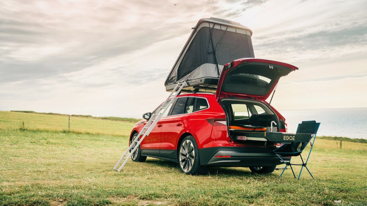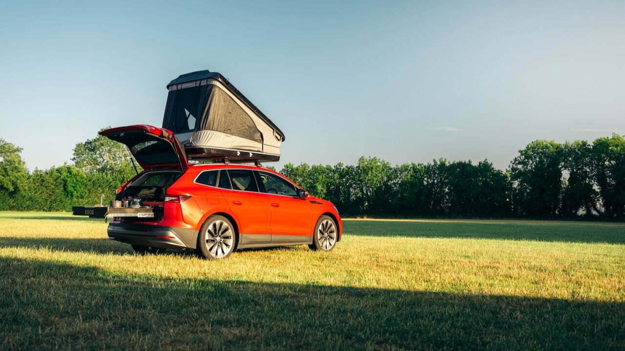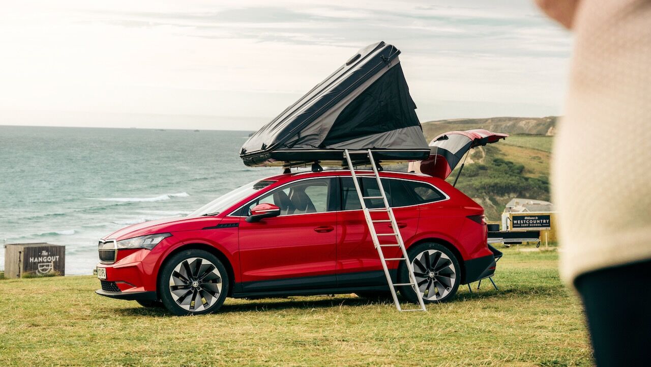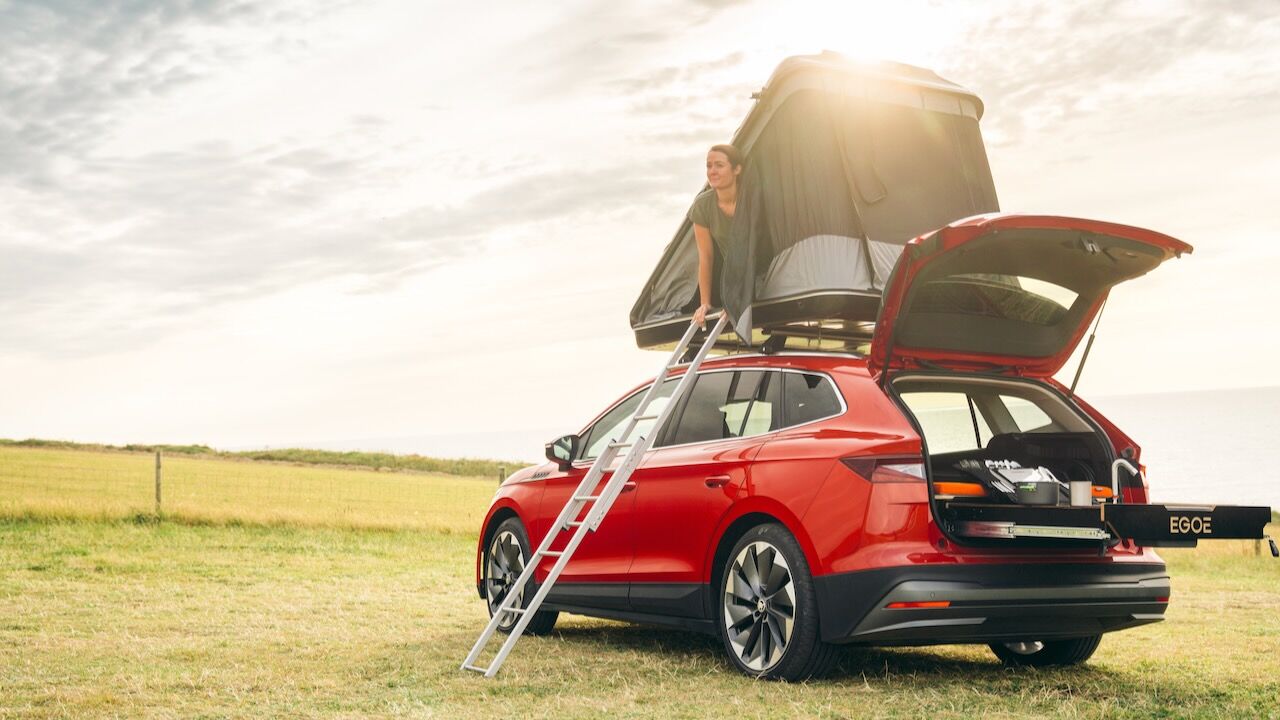 Como decíamos, se trata de un vehículo único creado por Skoda UK para mostrar el potencial del vehículo eléctrico. Se centra en el motivo de los festivales veraniegos y tiene capacidad para cuatro personas gracias a una serie de mejoras. Los usuarios podrán dormir en una tienda de campaña situada en el techo, un accesorio que destaca por su diseño aerodinámico cuando está plegado y por su facilidad de uso. Se despliega en minutos y se accede a ella a través de una escalera integrada.