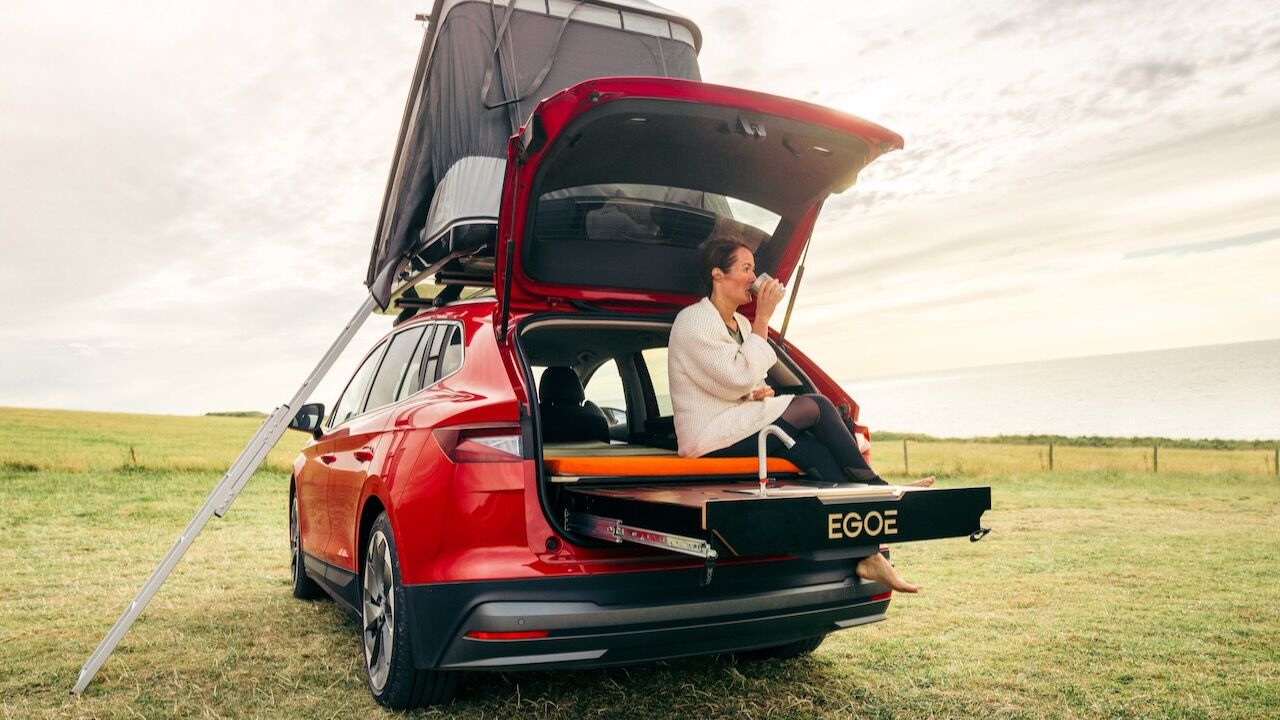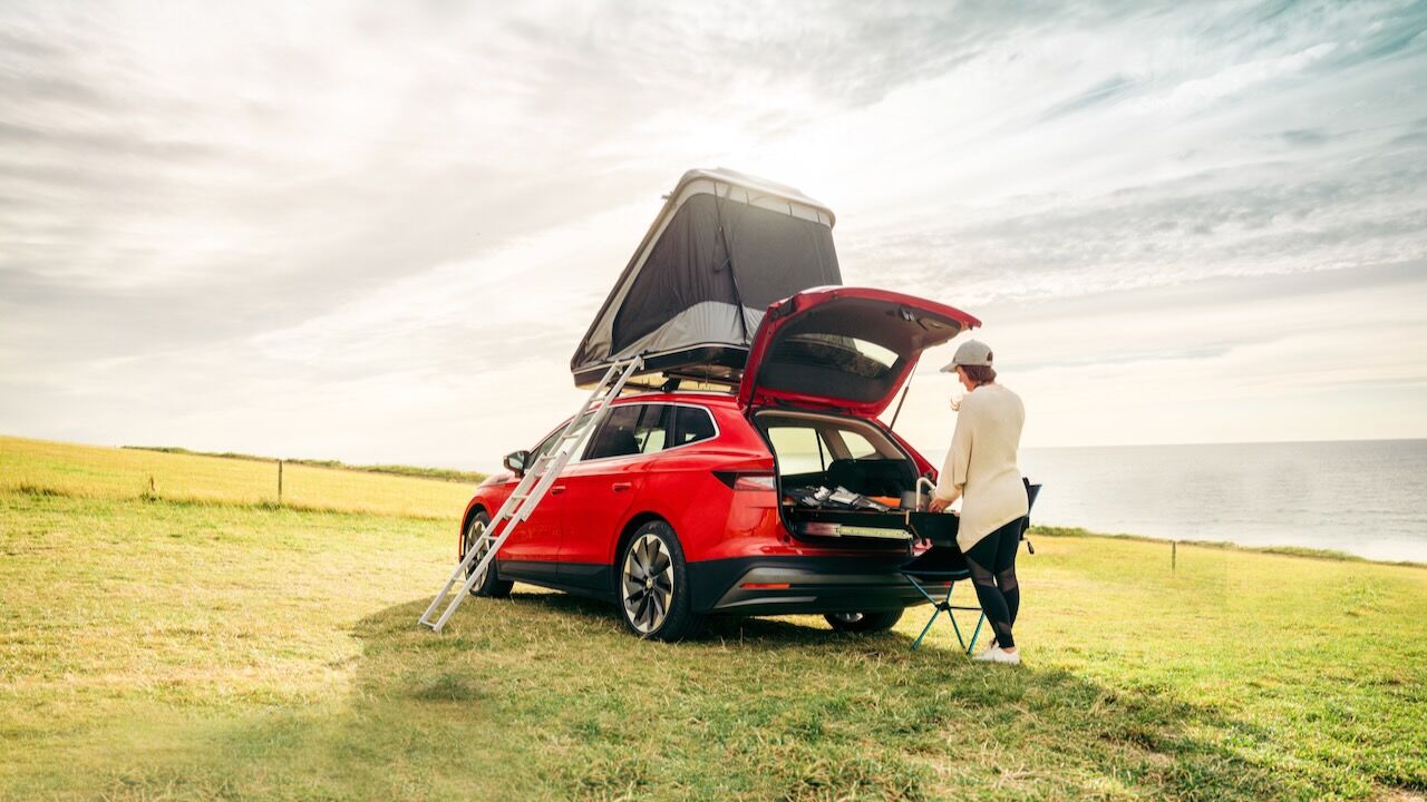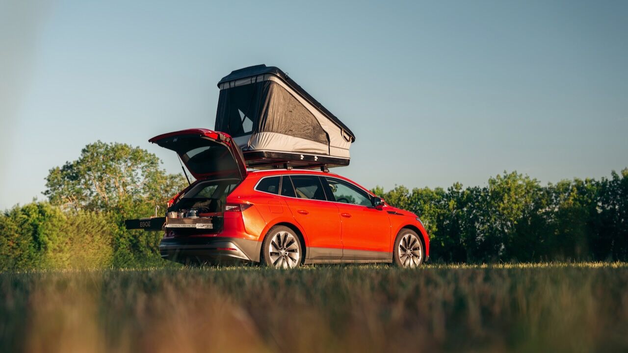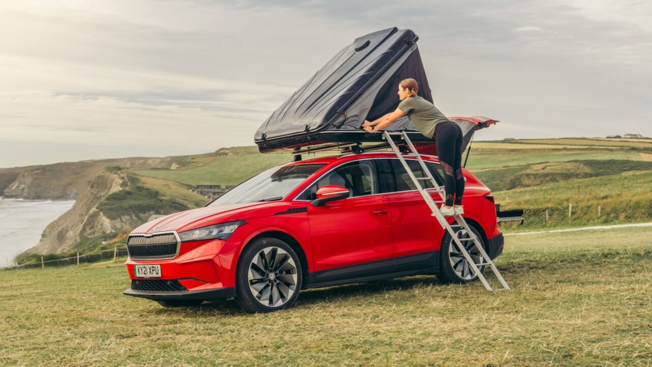 Como decíamos, se trata de un vehículo único creado por Skoda UK para mostrar el potencial del vehículo eléctrico. Se centra en el motivo de los festivales veraniegos y tiene capacidad para cuatro personas gracias a una serie de mejoras. Los usuarios podrán dormir en una tienda de campaña situada en el techo, un accesorio que destaca por su diseño aerodinámico cuando está plegado y por su facilidad de uso. Se despliega en minutos y se accede a ella a través de una escalera integrada.