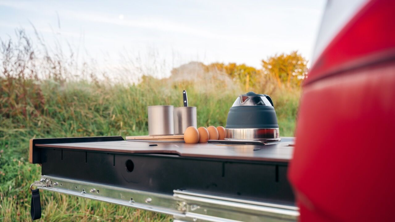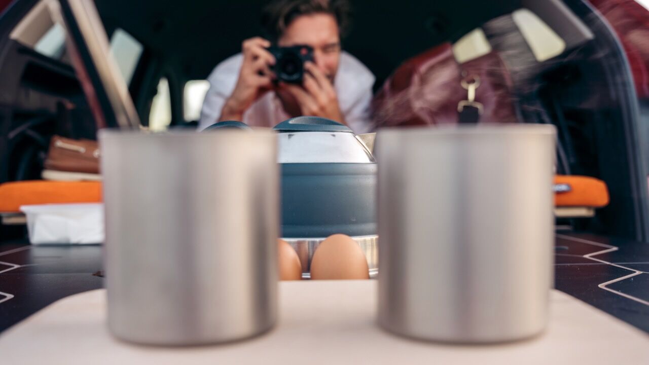 En el interior hay espacio para una segunda cama plegando los asientos traseros, que también se pueden seguir utilizando. Pero lo principal, es la unidad de camping de EGOE, que entra perfectamente en el maletero de 585 litros del Skoda Enyaq. Es deslizante y esconde en su interior un módulo de cocina de gas, fregadero plegable con grifo, una encimera y un amplio espacio de almacenamiento. Además de esto, el Enyaq iV 80 FestEVal también tiene sillas y mesas plegables para completar la experiencia, así como la iluminación ambiental, el sistema de sonido de ocho altavoces o conexión Wi-Fi para hasta ocho dispositivos.