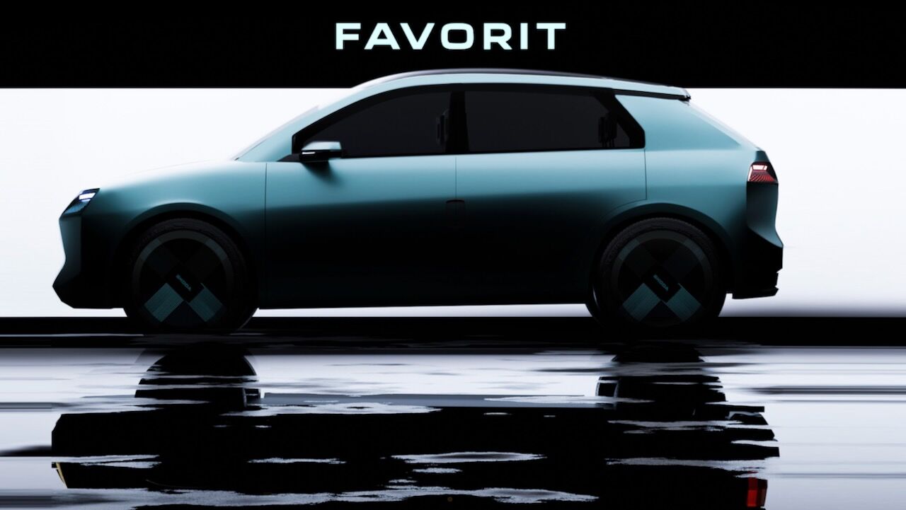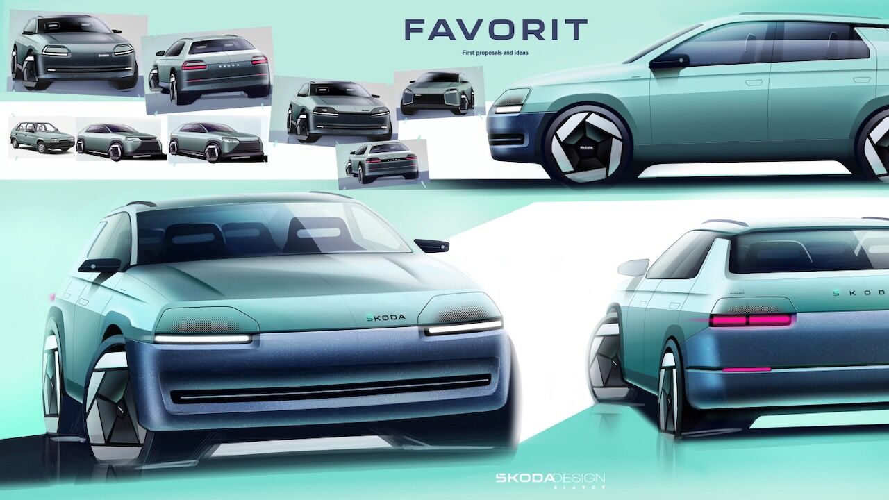 Estéticamente, este Favorit del siglo XXI se caracteriza por unas líneas depuradas, proporciones equilibradas y un frontal distintivo que recuerda vagamente al modelo de los 80, sin caer en el «retro» fácil. Destacan unos faros LED delgados inspirados en los grandes grupos ópticos del original, pero modernizados con tecnología de iluminación personalizable. Los tiradores de las puertas están integrados en la carrocería y se abren en sentido opuesto, lo que aporta una imagen futurista y coherente con el espíritu «Simply Clever» de la marca.