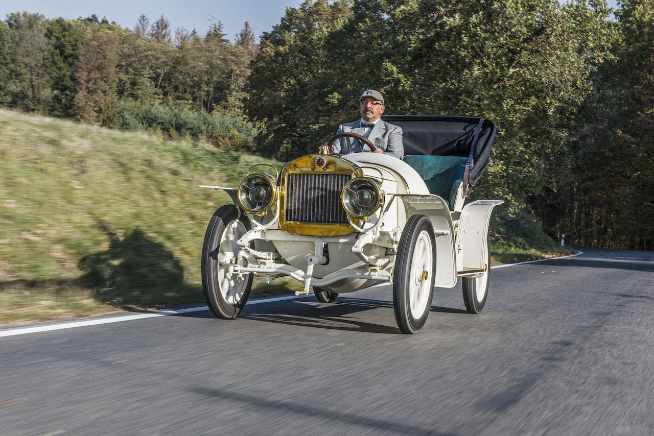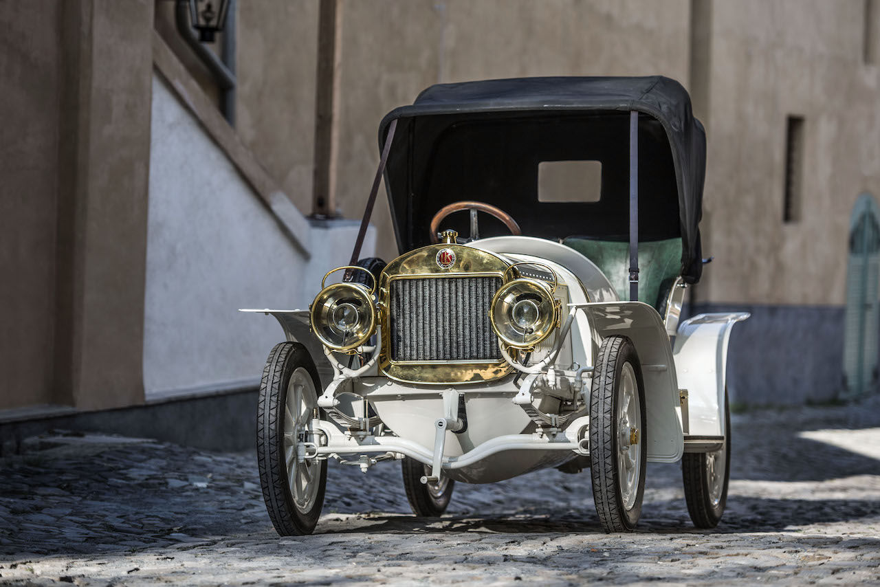 Salió de fábrica el 12 de julio de 1908 con el motor número 5635. A lo largo de los años ha cambiado de manos en innumerables ocasiones y ha recibido muchas modificaciones que lo alejaron del proyecto original. Como anécdota, apareció en algunas películas checoslovacas en las décadas de los 50 y 60. Por suerte, su mecánica se mantuvo intacta y se conservó con ese número de serie que ha hecho posible que se confirmase su autenticidad.