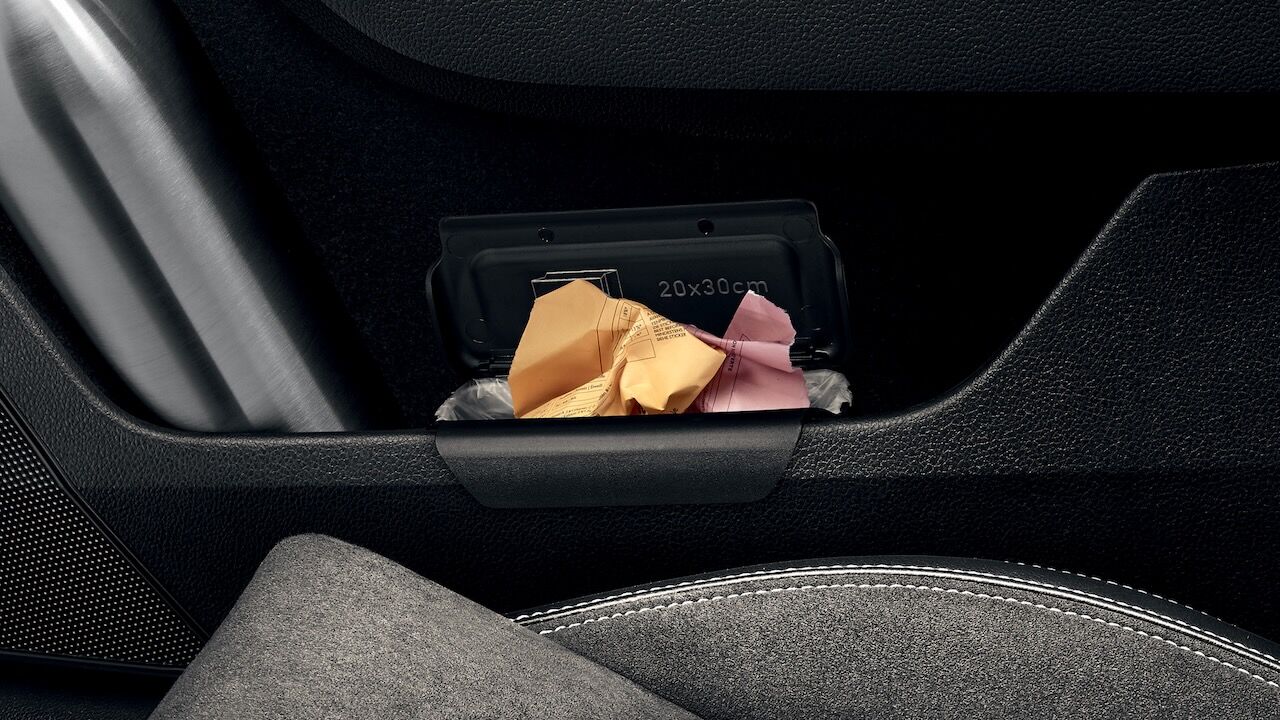 - Paraguas oculto en la puerta: práctico en días de lluvia y protegido siempre dentro del vehículo.