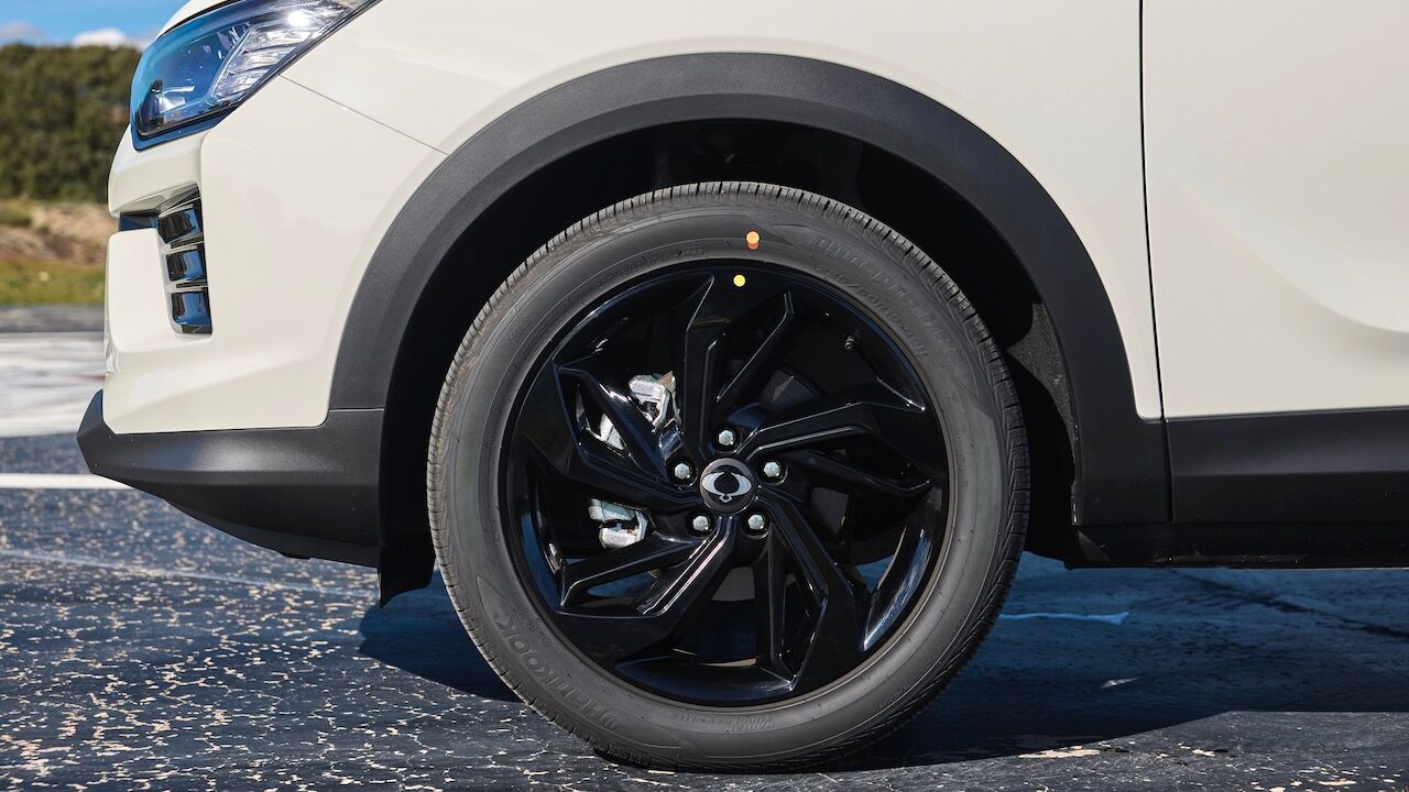 Como decíamos, ahora el Korando se beneficia de un paquete de equipamiento que modifica principalmente su estética, con el color negro como protagonista. Se deja notar en ese frontal con parrilla en negro brillante, que va a juego con la línea de los faros. En la rejilla inferior se mantiene el acento en rojo y las llantas son las de 19 pulgadas del acabado Limited. Otro aspecto que llama mucho la atención es que las letras que dan nombre al modelo también se hayan teñido de negro para dar ese punto de contraste adicional.