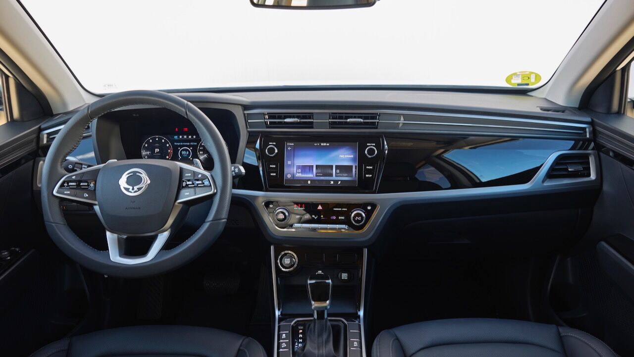 Lo mismo se aplica en la zaga, con la línea entre los pilotos de color negro y un difusor trasero en negro brillante. Como ya se podía hacer anteriormente, se opta por la carrocería bitono para tener tanto el techo, como sus barras, como los pilares y los retrovisores en el tono predilecto del Black Pack. En el interior del Korando lo cierto es que no se aprecian novedades destacas. Ya tenían bastantes superficies en Piano Black y eso le hará ir a juego, a pesar de que compromete la calidad percibida.