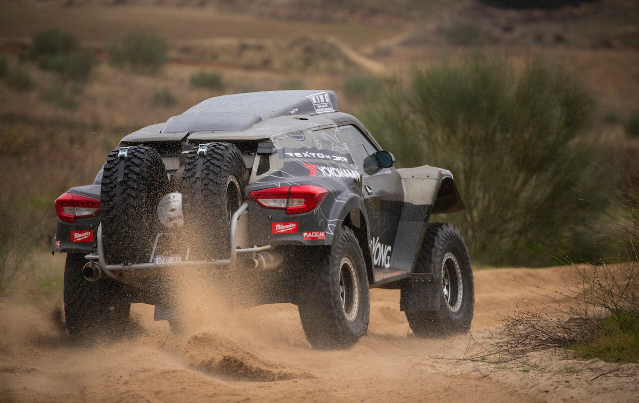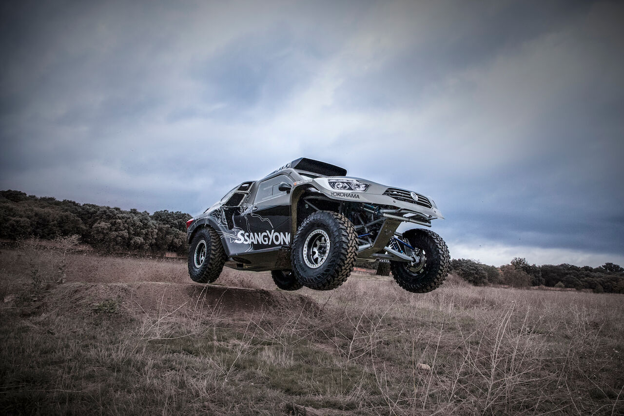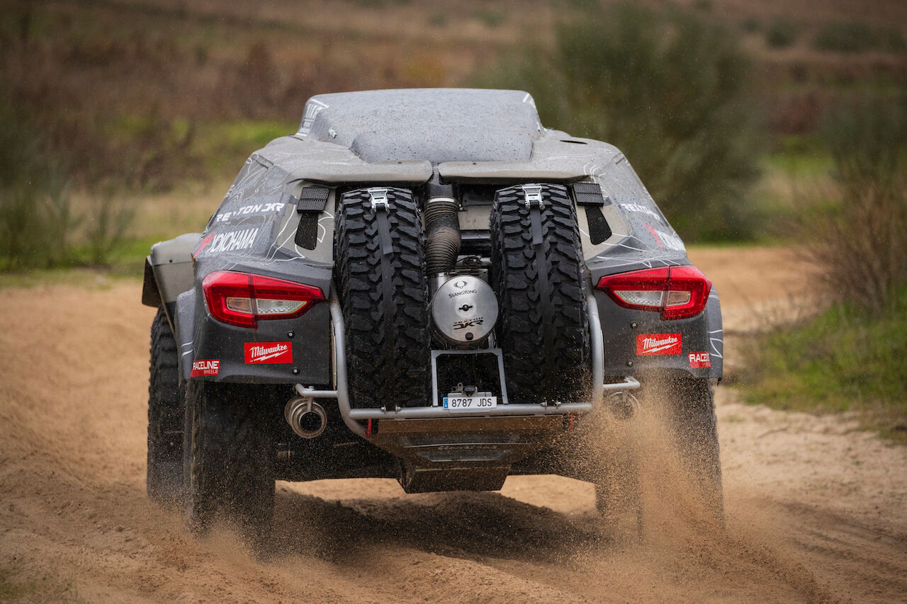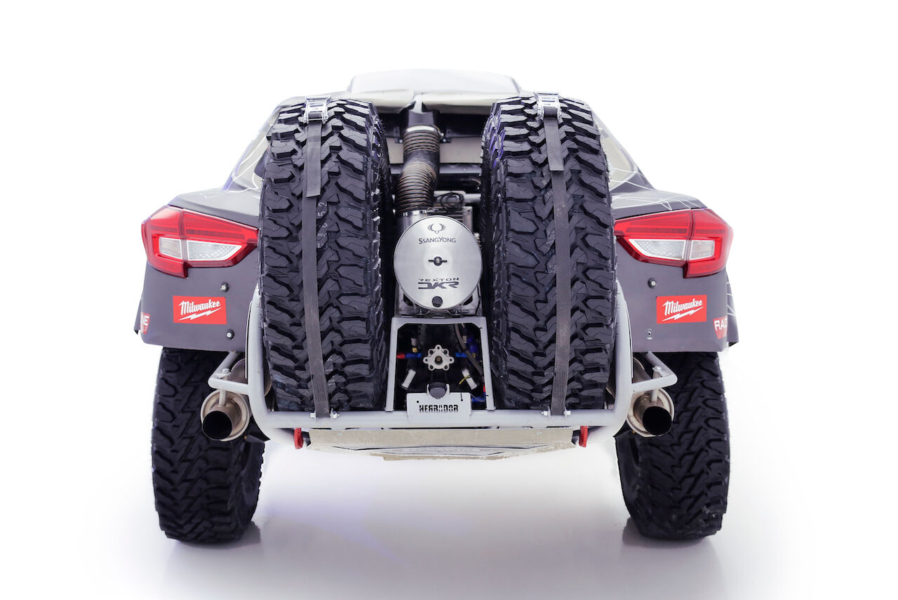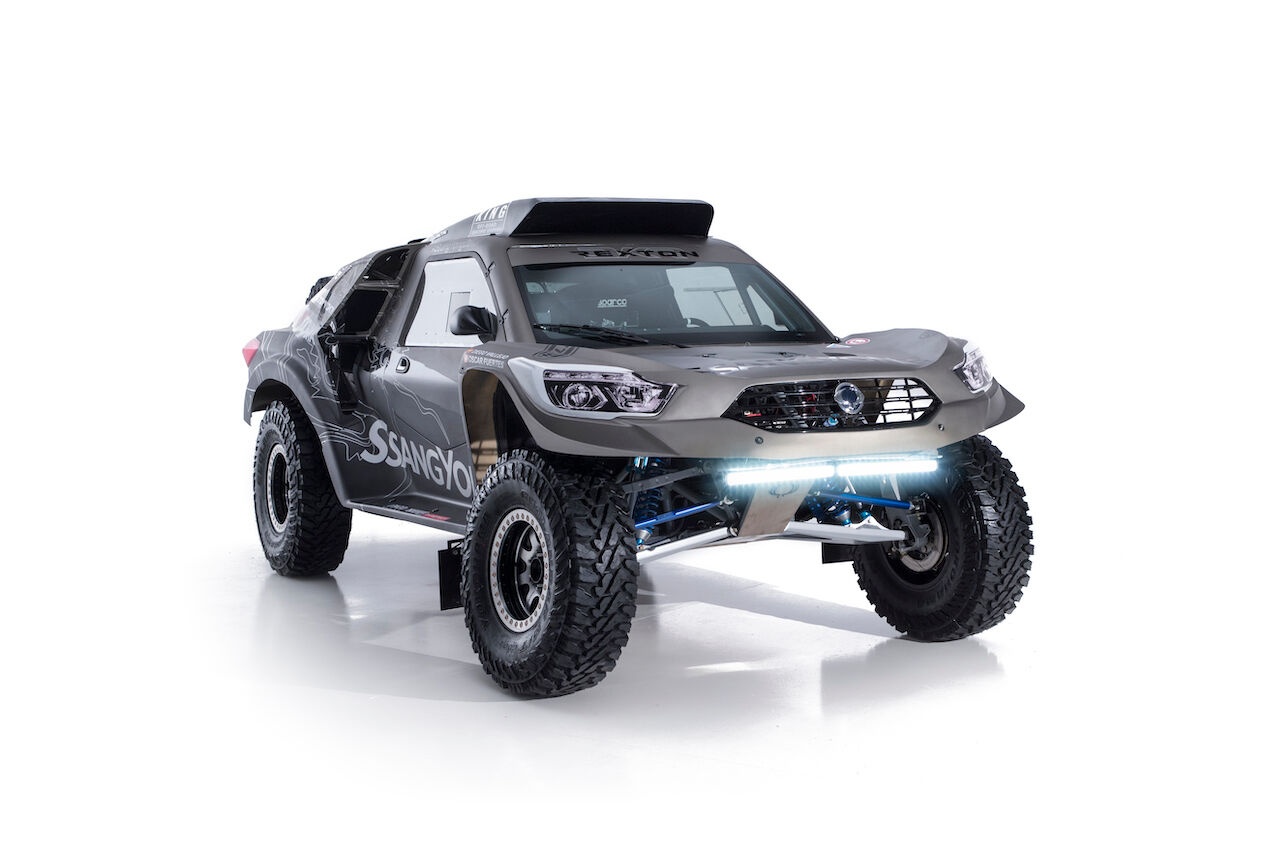 Atrás queda el SsangYong Tivoli DKR que tantas alegrías dio el pasado año. Ahora ha tocado dar la bienvenida al SsangYong Rexton DKR, que se ha beneficiado de la experiencia del equipo para ser mejor coche. Competirá en la categoría T1.3 al ser un buggy de dos ruedas motrices con motor de gasolina. Aunque toma el nombre del SsangYong Rexton, cualquier similitud con el vehículo de producción es una mera casualidad, pues el coche ha sido hecho de forma artesanal.