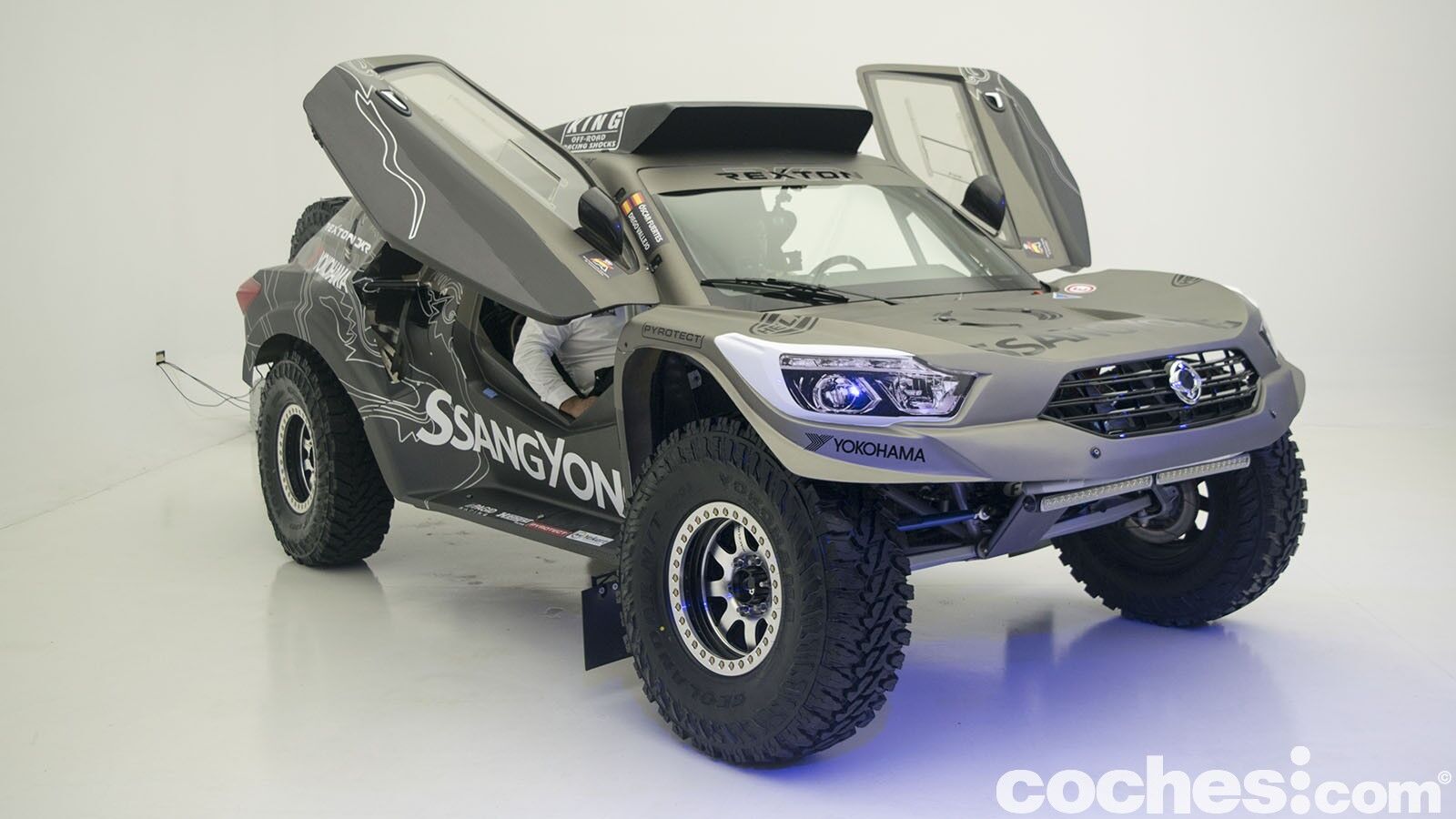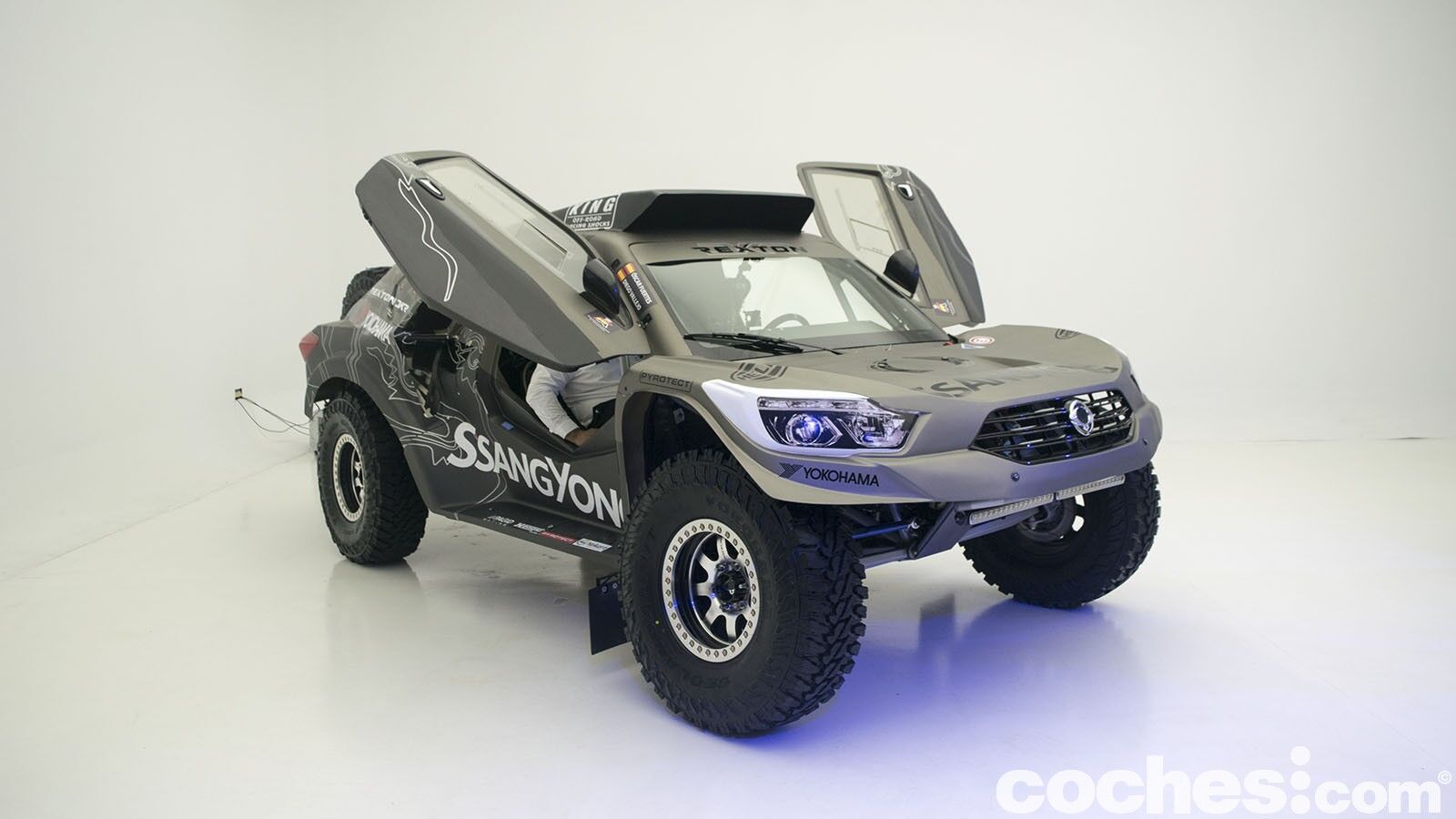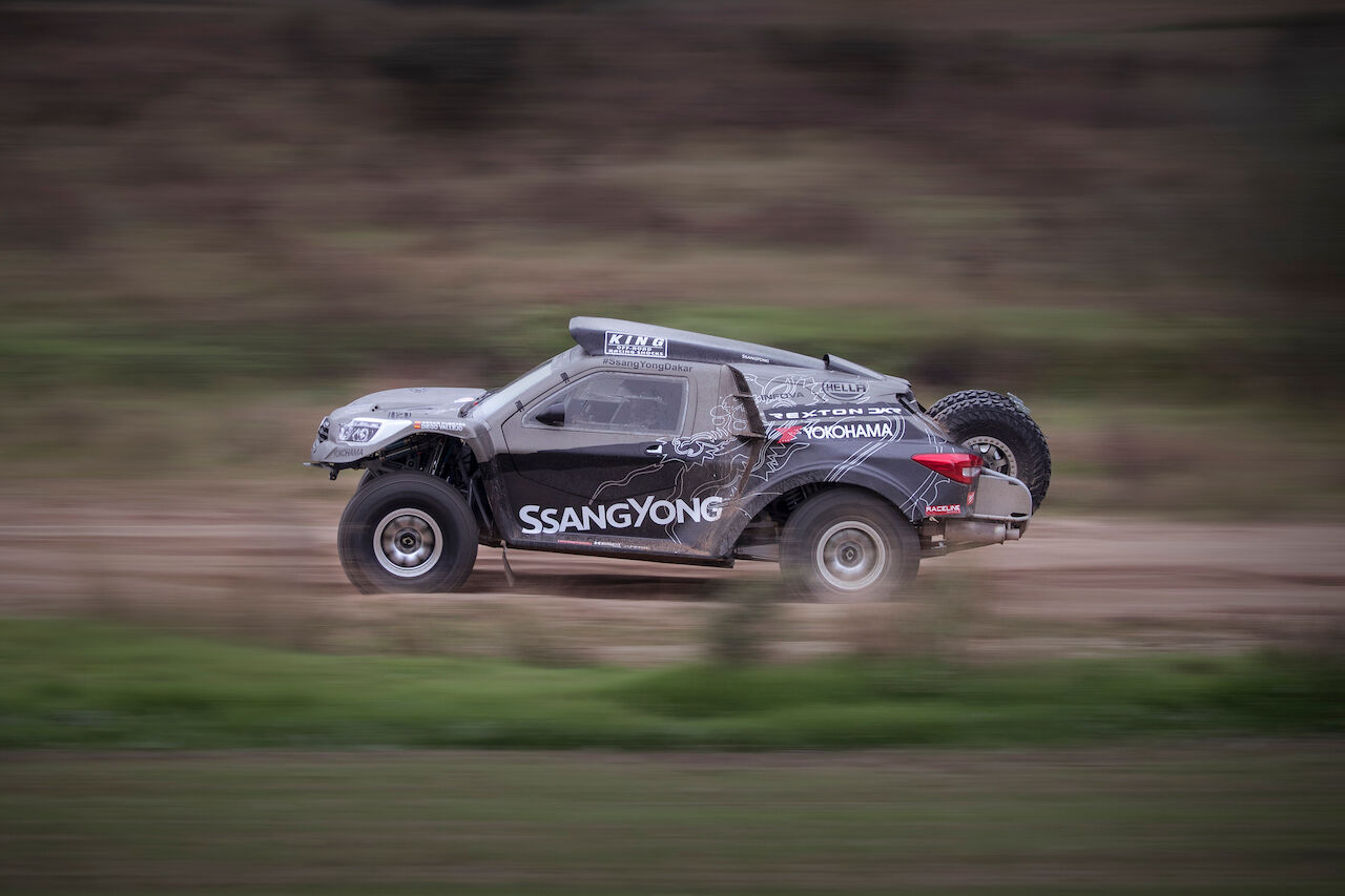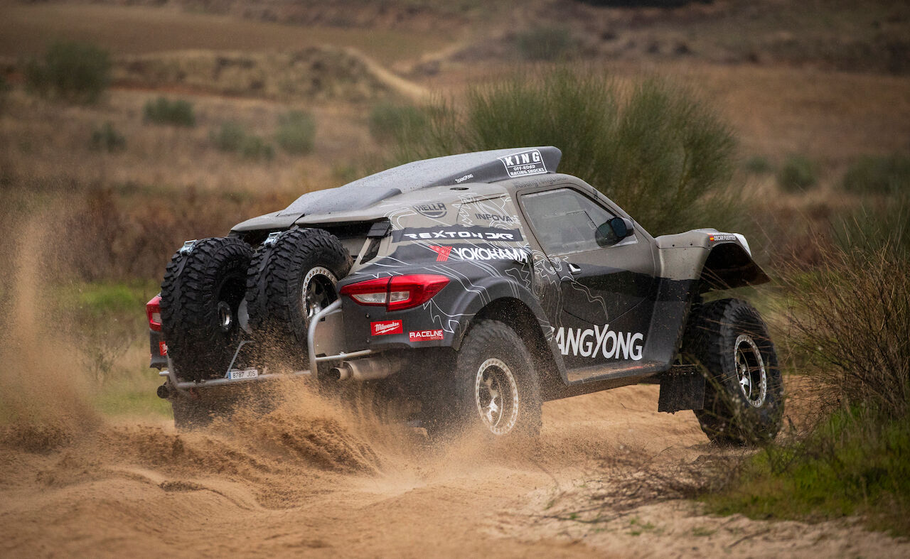 Atrás queda el SsangYong Tivoli DKR que tantas alegrías dio el pasado año. Ahora ha tocado dar la bienvenida al SsangYong Rexton DKR, que se ha beneficiado de la experiencia del equipo para ser mejor coche. Competirá en la categoría T1.3 al ser un buggy de dos ruedas motrices con motor de gasolina. Aunque toma el nombre del SsangYong Rexton, cualquier similitud con el vehículo de producción es una mera casualidad, pues el coche ha sido hecho de forma artesanal.