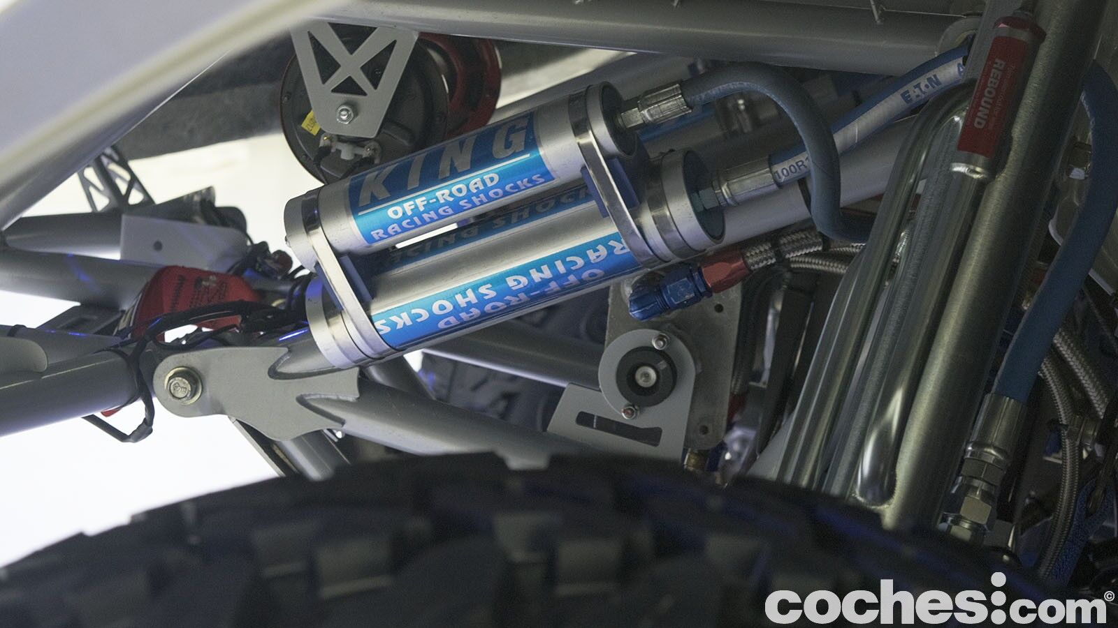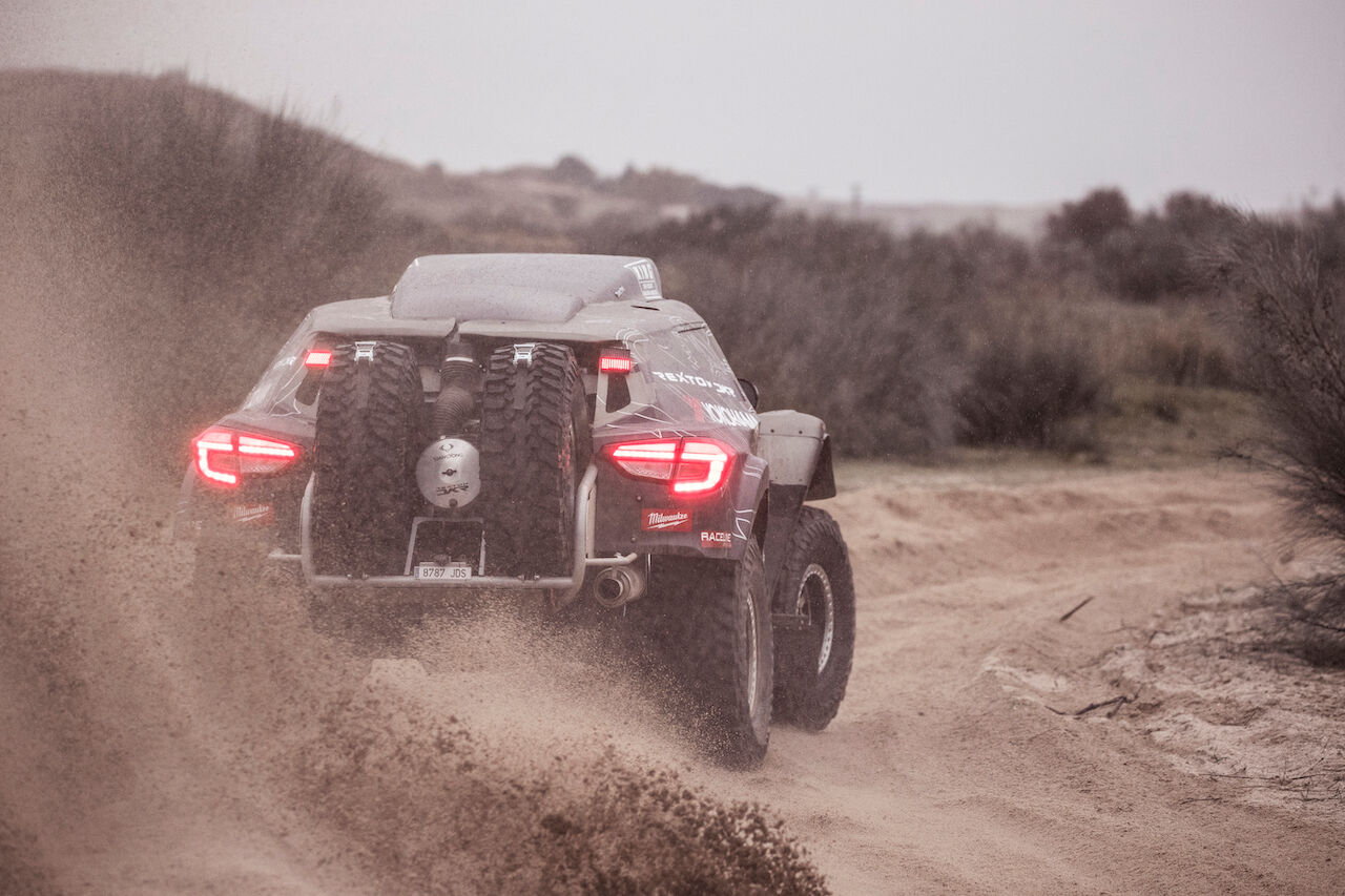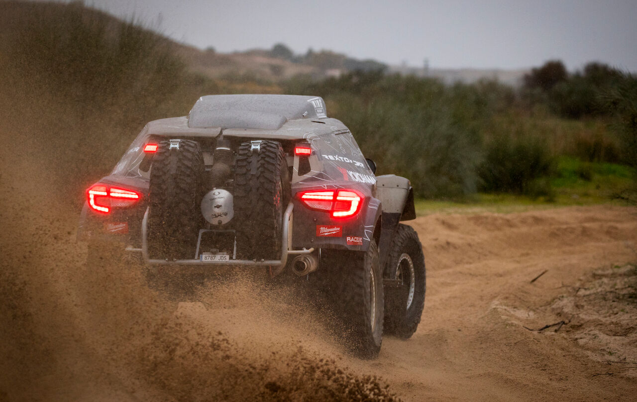 De esta forma podrá surcar las dunas a velocidades de hasta 195 km/h, con una impresionante aceleración de 0 a 100 km/h en 4,4 segundos. Igual de importantes son otros elementos como las llantas de 17 pulgadas Raceline con «beadlock», que van calzadas por neumáticos Yokohama Geolandar M/T G003. Las suspensiones cuentan con amortiguadores refrigerados King, cuatro en cada eje y con un recorrido de 400 mm delante y 600 mm detrás. El depósito de combustible Pyrotect ahora es de 300 litros (las etapas serán más cortas) y cuenta con cuatro bombas de alta presión.