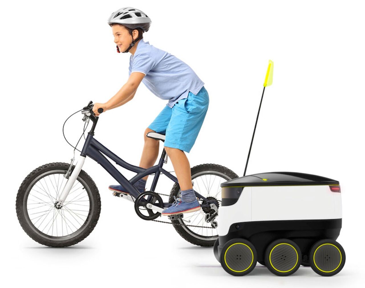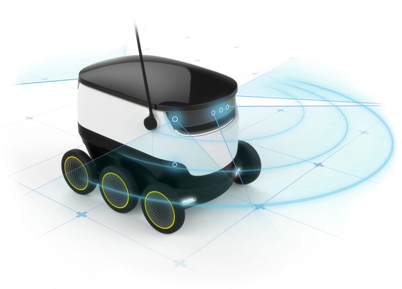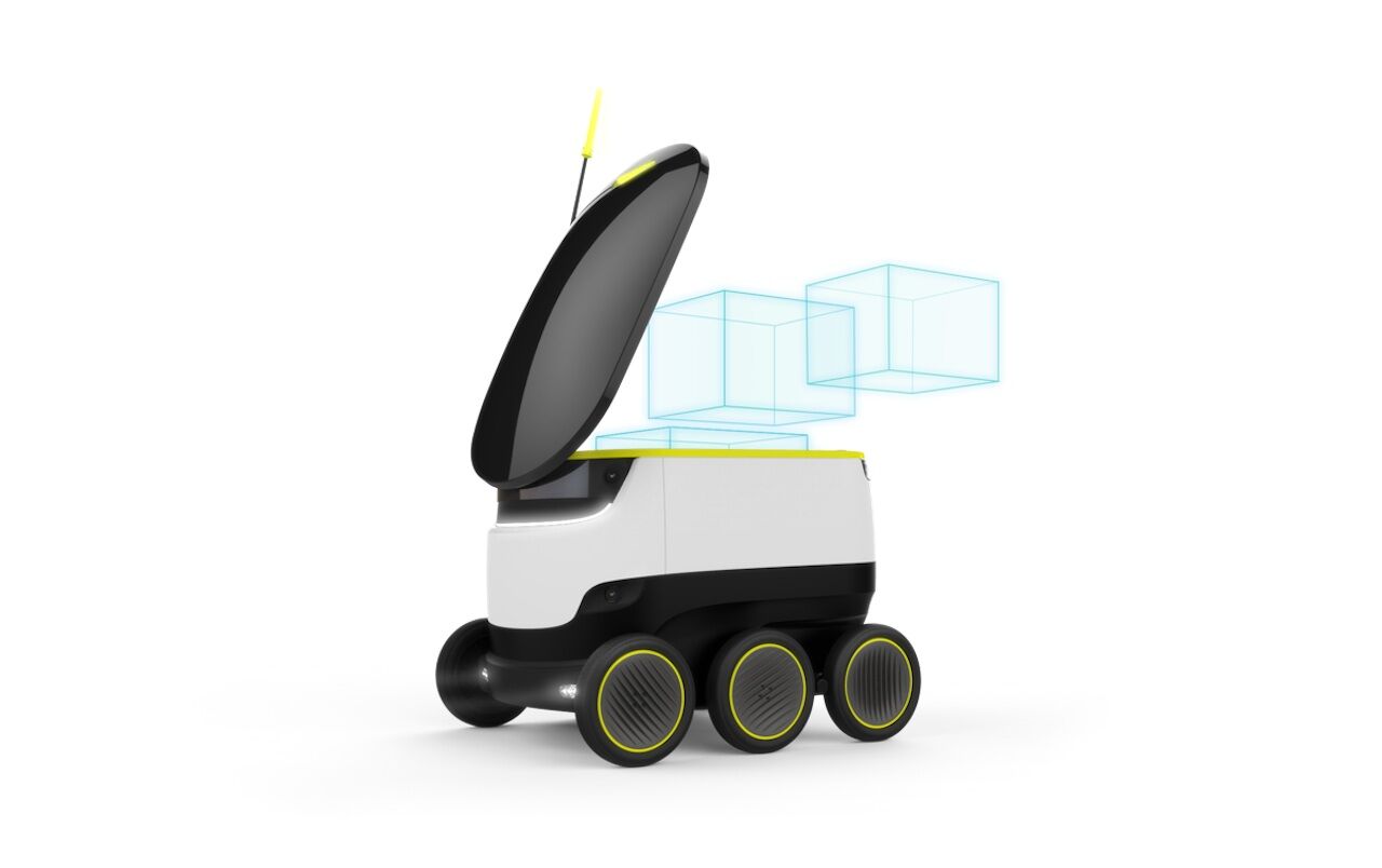 Este robot de tamaño reducido ha sido creado para dirigirse del punto A al B sin necesidad de conductor. Se mueve gracias a una batería eléctrica y a sus seis ruedas. No es muy rápido (alcanza una velocidad de 6,5 km/h) y tampoco puede cargar mucho (tiene una capacidad de 9 kilos), pero podría repartir bastantes cosas. Cuando llega al destino, el smartphone es la clave para desbloquear su dispositivo de apertura. De este modo, no puede ser abierto hasta que el destinatario lo tenga delante.