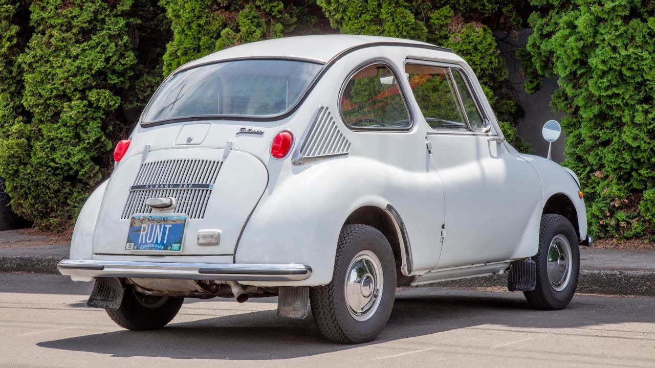 El Subaru 360 estuvo a la venta entre 1958 y 1971. Casi todos se matricularon en Japón, aunque 10.000 unidades llegaron a Estados Unidos y algunos acabaron en Australia. Lo movía un motor bicilíndrico de dos tiempos y 356 cc, de dos tiempos, refrigerado por aire. Este bloque iba montado en la parte trasera del automóvil y hacía girar las ruedas traseras.