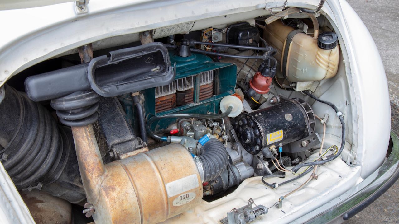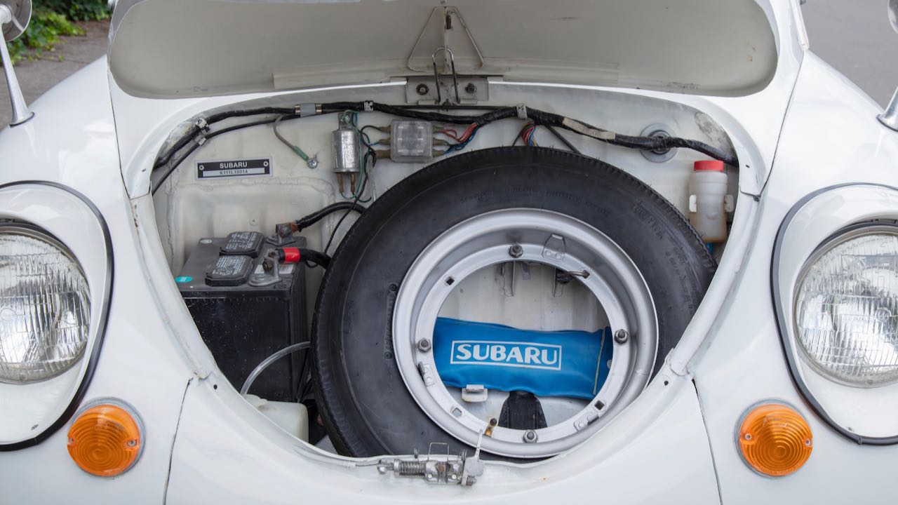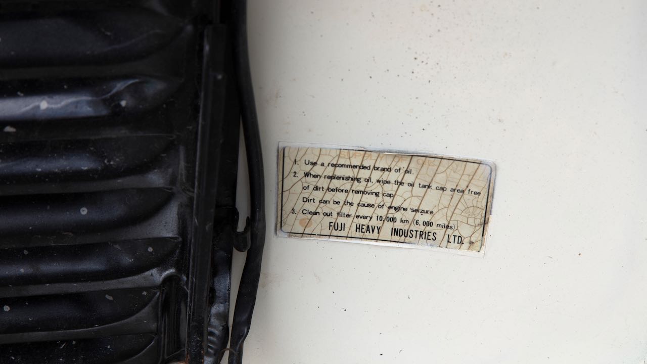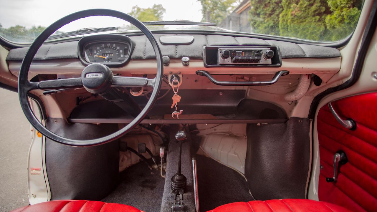 Y si hoy nos hemos acordado del Subaru 360 es porque el día 13 de agosto se subasta la unidad cuyas imágenes acompañan a este artículo. Se trata de un Subaru 360 Deluxe, propulsado el motor de dos tiempos y dos cilindros de 356 cc con 36,5 CV, asociado a una transmisión manual de 3 velocidades. Era la versión más equipada, con cromados en ruedas y otras zonas para que entrase por los ojos a los compradores estadounidenses.