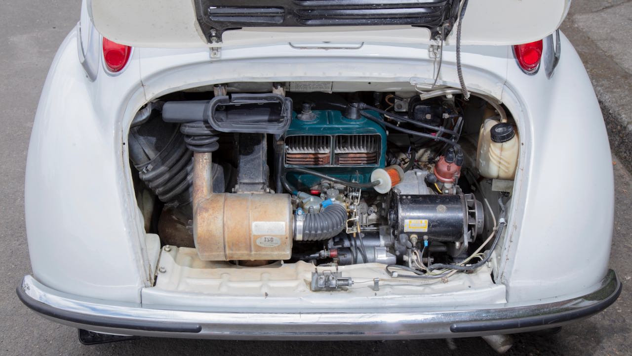El Subaru 360 fue diseñado para cumplir con las regulaciones de automóviles Kei de Japón, que buscaban fomentar la producción de automóviles pequeños, eficientes y asequibles para la población en general. De ahí ese pequeño motor bicilíndrico 356 cc refrigerado por aire y sus apenas 410 kg de peso.