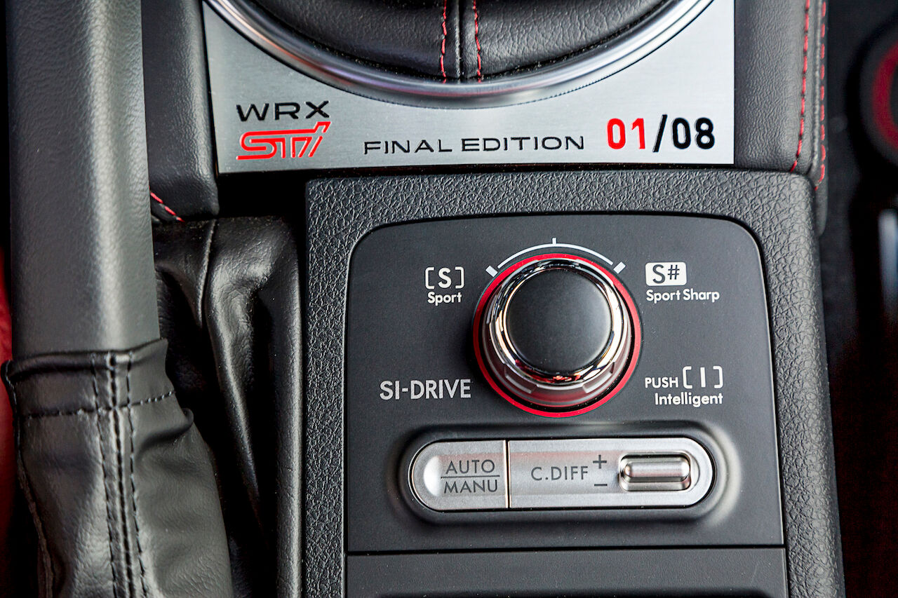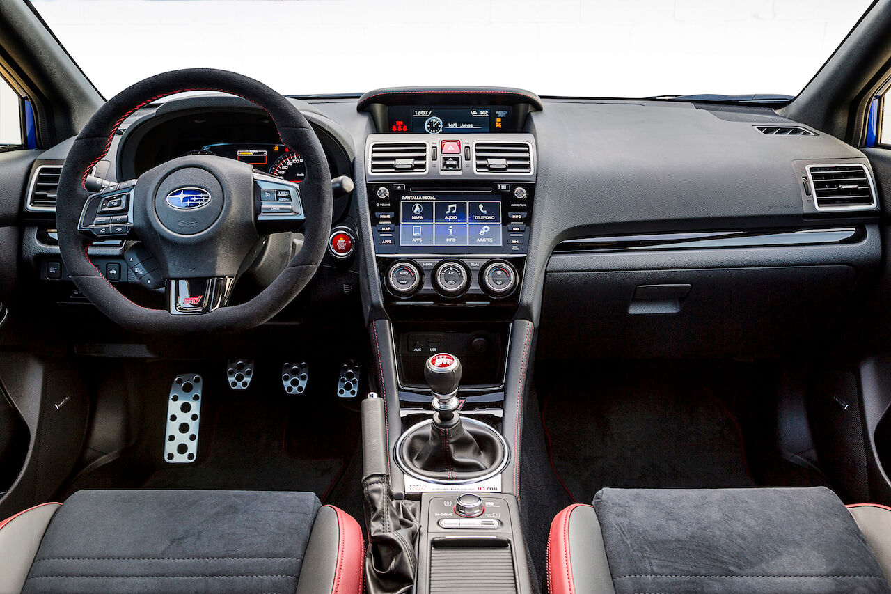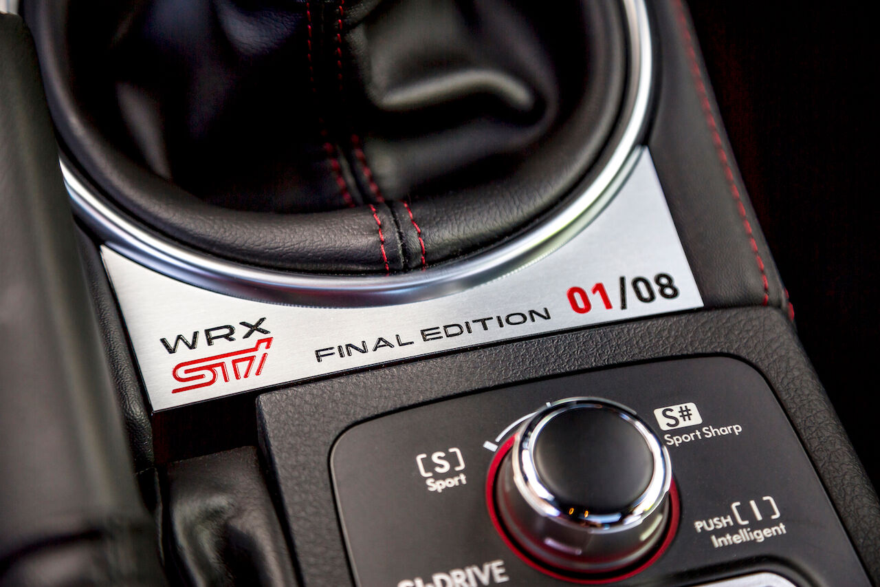 En el interior de los ocho ejemplares se ha puesto una placa conmemorativa de la edición y en el llavero también va el número de serie de la unidad. En el habitáculo de los Subaru WRX STI Final Edition hay elementos deportivos como los asientos tipo bucket o el volante con las siglas STI. Precisamente el volante va forrado en Alcántara negro con costuras en rojo, un color que también aparece en el pomo de la palanca de cambios o en las alfombrillas exclusivas.