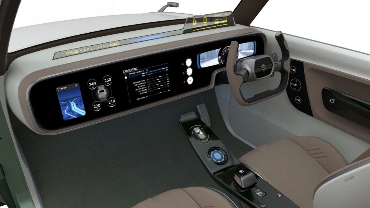 Se desconoce lo que hay bajo la piel del Suzuki Waku SPO Concept. Tan solo sabemos que está propulsado por una mecánica híbrida enchufable y que promete una experiencia de conducción divertida, con un modo Sport disponible. La activación de esta configuración cambiará la proyección de la moldura de madera por información de relevancia para este tipo de conducción.