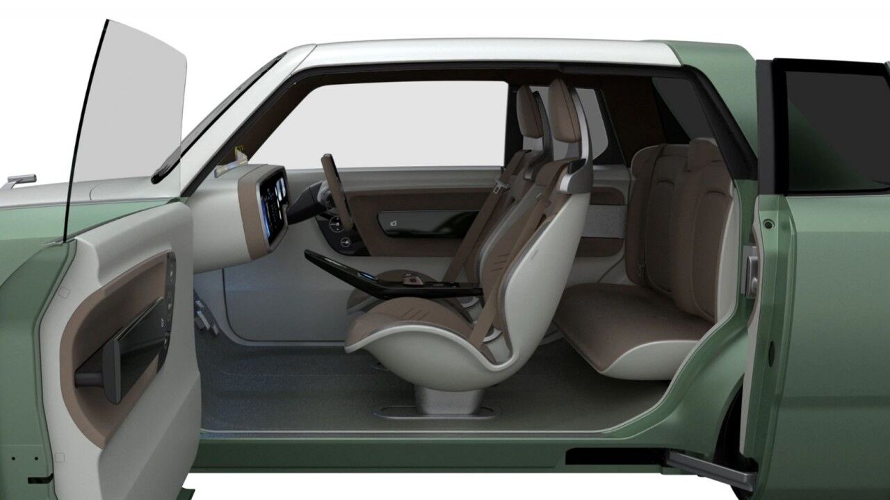 Las puertas corredizas de los asientos traseros facilitan la entrada y salida del habitáculo, incluso en “modo coupé”. Al cambiar a la forma de familiar, los asientos traseros se deslizan en su totalidad hacia atrás y los respaldos se reclinan para crear aún más espacio. El resto del interior presenta unas formas sencillas y futuristas, con una gran pantalla a modo de salpicadero y un volante que se corresponde más al de un avión.