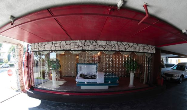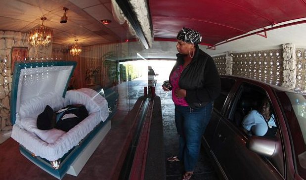 Si eres de los que no soporta ir a un funeral. Si te incomoda ponerte el traje para acudir a la misa y después al cementerio, la idea puesta en marcha en Los Ángeles, quizás sea de tu interés. El tanatorio Robert L. Adams, localizado en la popular zona de los Compton, ha desarrollado un peculiar sistema para que los interesados puedan dar su último adiós al muerto, sin tener que bajarse del coche.