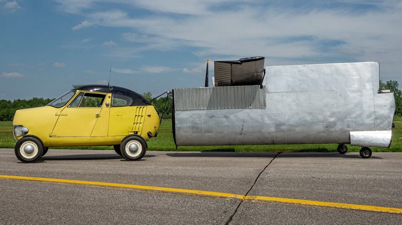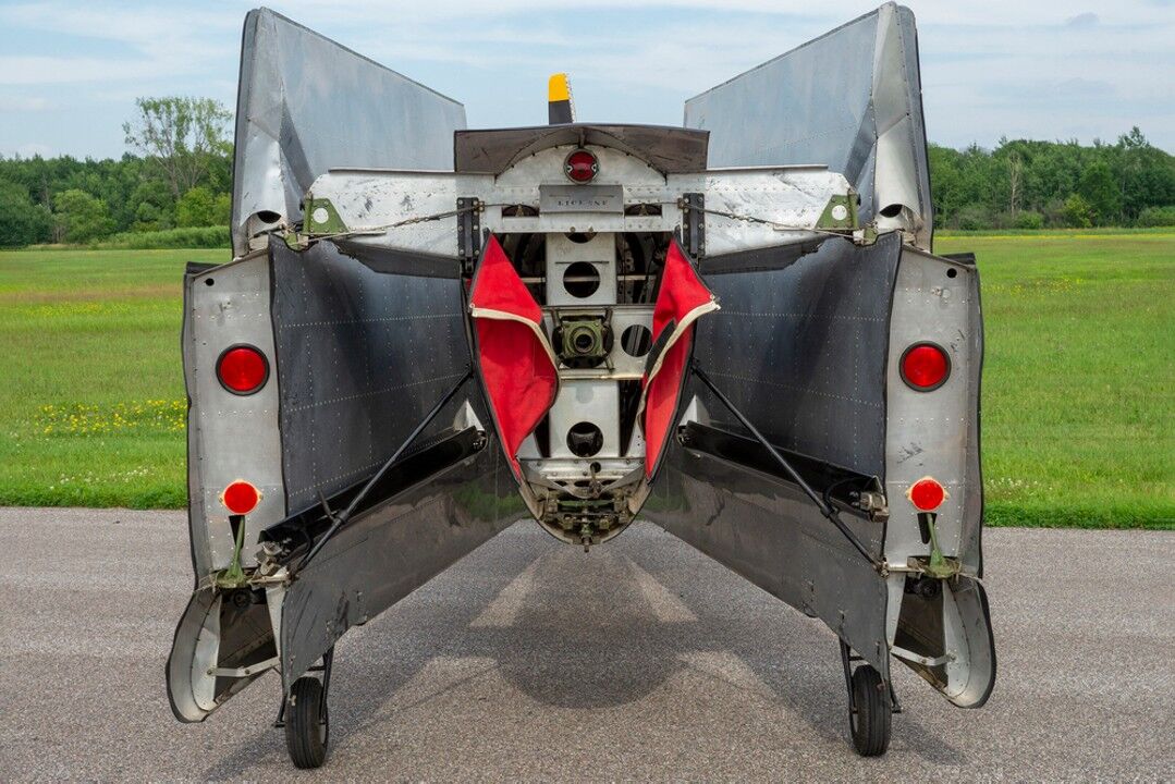 Y este ejemplar de 1954 será el que se pondrá a la venta en la subasta Barrett-Jackson de Scottsdale en enero. ¿Temeroso de subir al cielo en una máquina así? Se dice que este Aerocar registró 781 horas de vuelo, junto con 15.000 millas de carretera, algo más de 24.000 kilómetros, así que tal vez eso alivie una parte de tus temores. Está certificado por la CAA, y la casa de subasta declara que es actualmente apto tanto para circular por el aire como por la carretera.