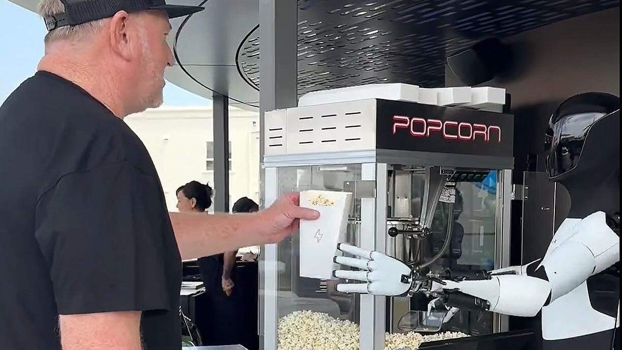 El Tesla Diner captura la esencia de los diners retro con su estética neón y vintage, pero le da un giro futurista. Para empezar, tiene un autocine integrado, con proyecciones de películas clásicas y estrenos en pantallas LED gigantes. Todos los pedidos son 100% digitales, a través de una app, terminales en el local o desde el coche, pero sin duda lo más novedoso son los robots Optimus, que sirven palomitas y ayudan al personal humano.