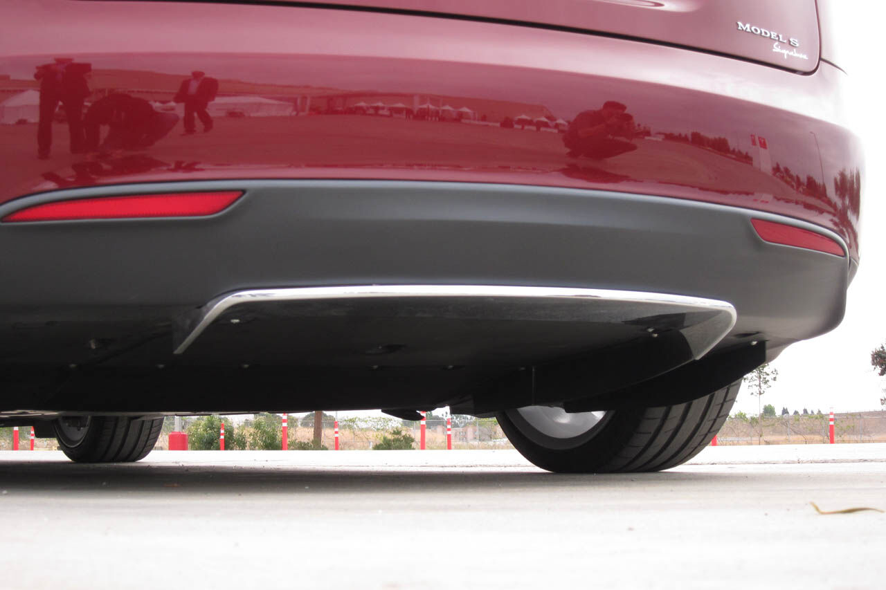El Model S es un coche diseñado por completo para ser eléctrico. El motor está en el eje posterior, y transmite directamente potencia y par a las ruedas traseras (por lo tanto es un coche de propulsión trasera, aunque según Tesla, un poco más adelante podría haber un modelo con tracción total).