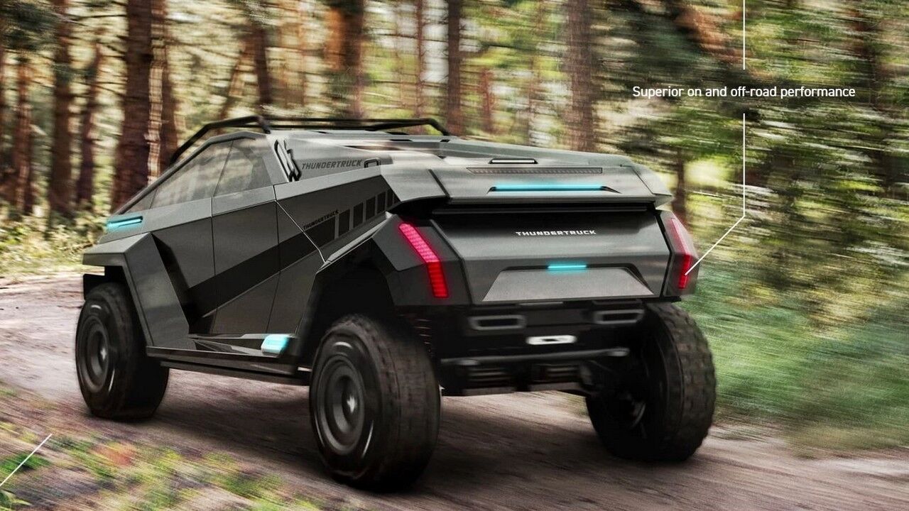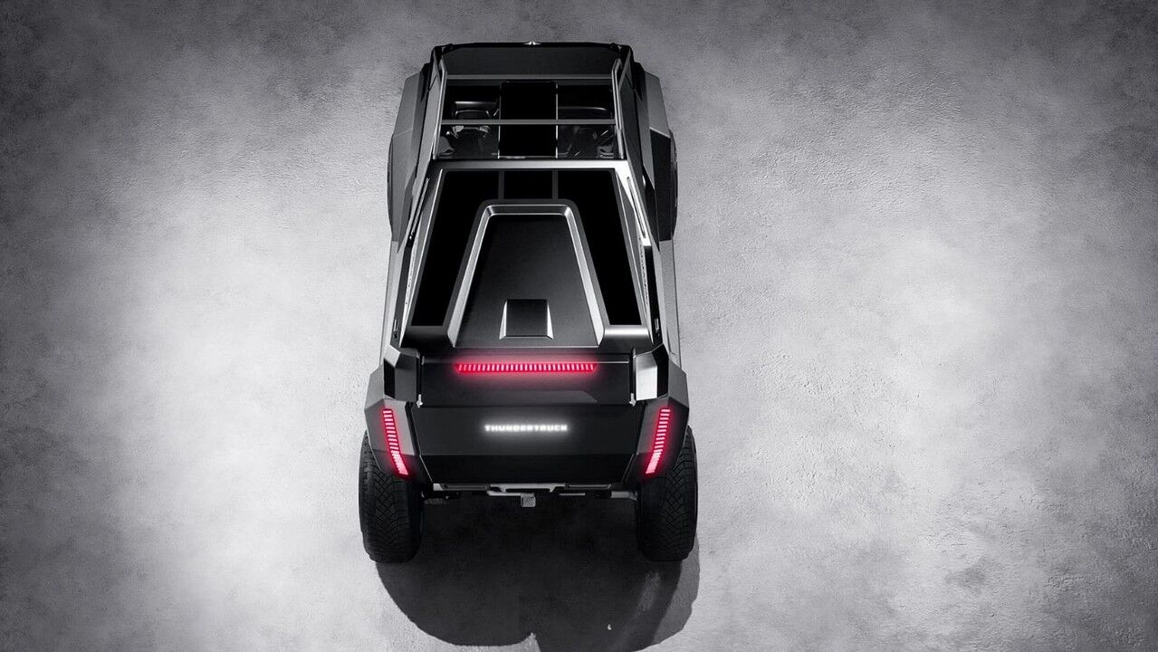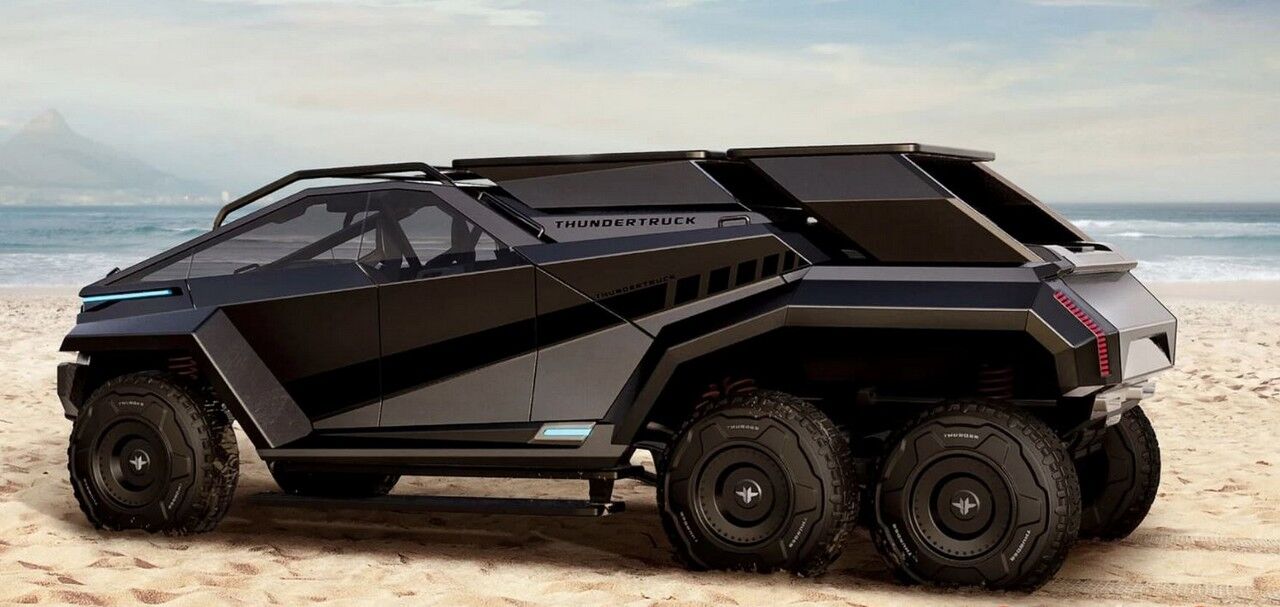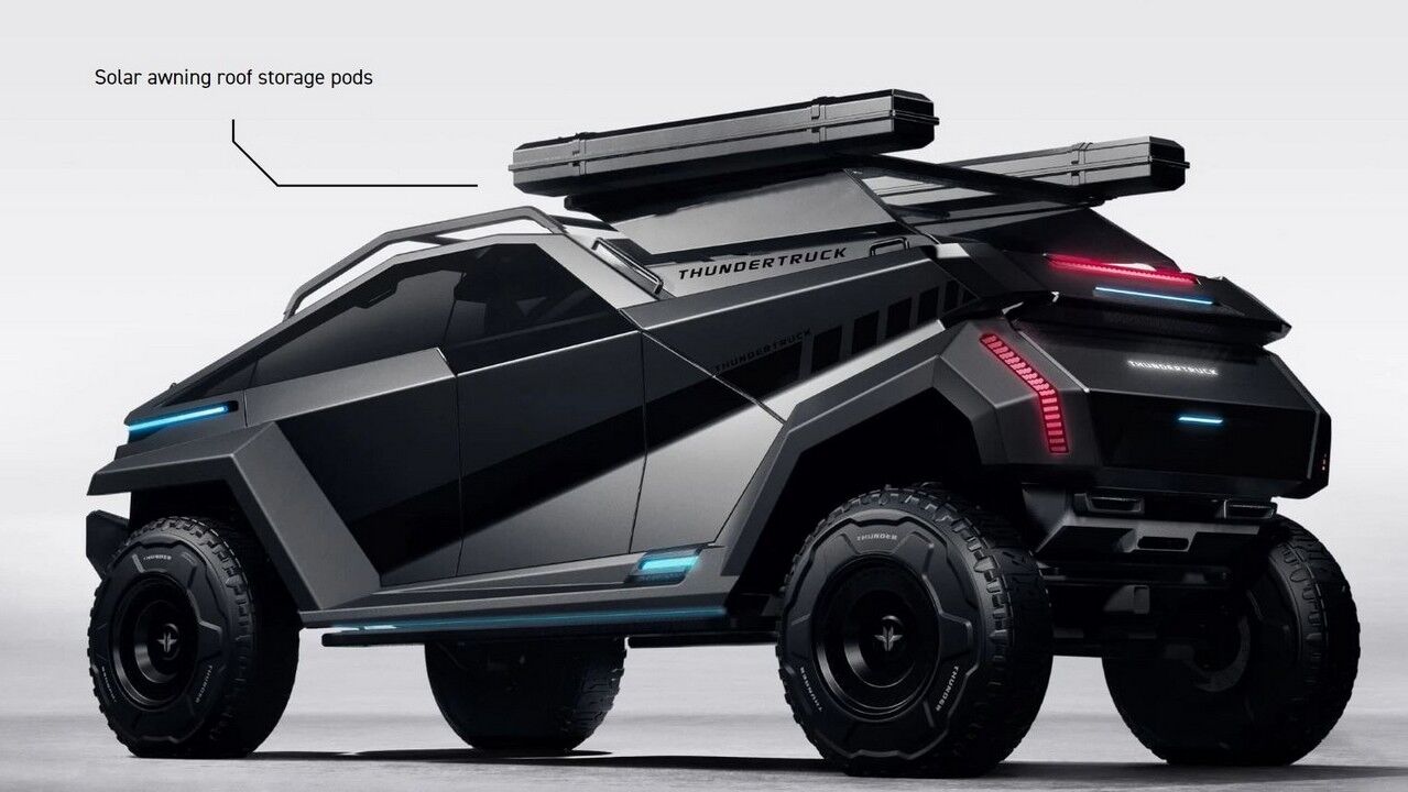 Parece que el Thundertruck es el resultado de una noche de pasión entre la Tesla Cybertruck y el Tumbler de Batman. A grandes rasgos, lo podríamos definir como una camioneta multiusos totalmente transformable de cero emisiones que ha sido creado pensado como un vehículo de uso exterior definitivo. Si duda, resulta una vista impactante gracias a su tamaño descomunal y sus ángulos agudos, pero en última instancia es práctico y ecológico, y brindaría fiabilidad y un rendimiento sobresaliente donde sea que lo lleves, al menos en teoría.
