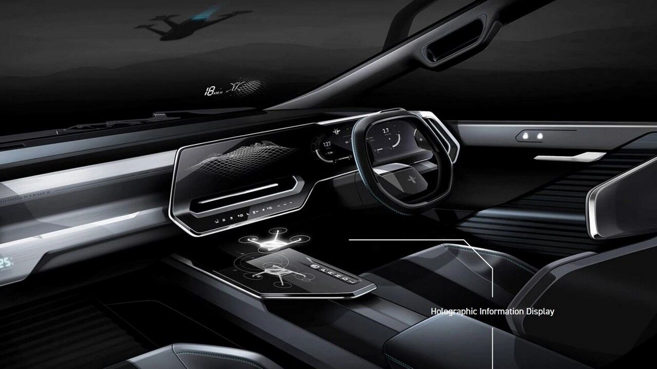 Conductor y pasajero estarán acurrucados en un habitáculo dotado de alta tecnología, con una pantalla de infoentretenimiento holográfica y un dron asociado que se llevan el protagonismo. Suponemos que este último. Suponemos que se usará para hacer el reconocimiento aéreo del terreno y localizar el próximo destino. Wolfgang asegura que sería una plataforma todoterreno cómoda, tirando hacia el segmento de lujo en cuanto a terminaciones y materiales, dotado de un elevado equipamiento de seguridad y tecnología, y con un diseño del que fardar.