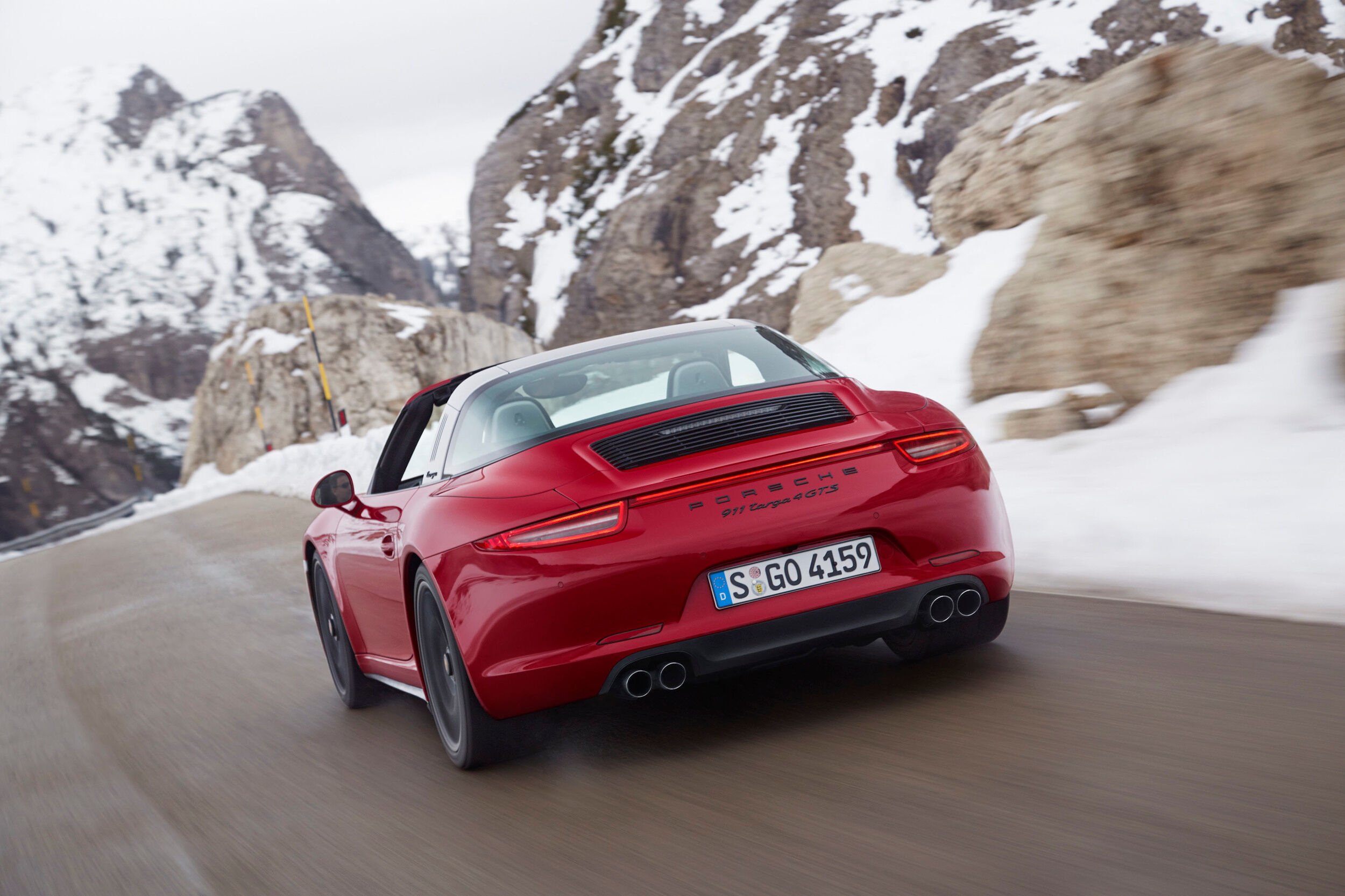 El 911 Targa permite disfrutar de la conducción al aire libre, gracias a un techo que se descubre, de forma completamente automática. La versión GTS con tracción integral se distingue del resto de la gama rápidamente, ya que, en comparación con los 911 Carrera de dos ruedas motrices, los pasos de rueda traseros son 22 milímetros más abultados y las ruedas tienen diez milímetros más de ancho.