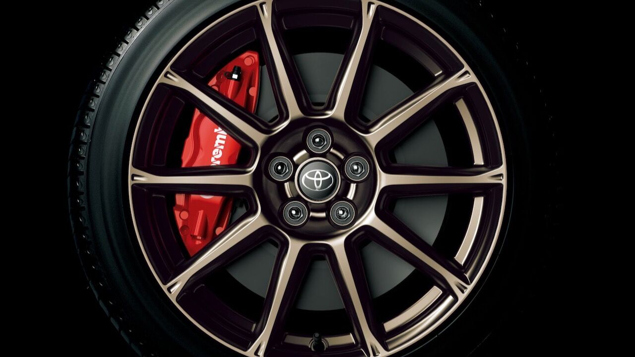 En este caso la inspiración es muy clara, hace referencia a la última edición especial del AE86 Sprinter Trueno, la que fue bautizada como GT Apex Black Limited. De ahí que aparezca con la carrocería en ese llamativo color negro, con unas llantas de 17 pulgadas en color bronce y unas franjas en ese mismo tono para hacer contraste. El alerón también va en negro, mientras que las pinzas del sistema de frenos Brembo (con cuatro pistones delante y dos detrás) están pintadas en rojo.