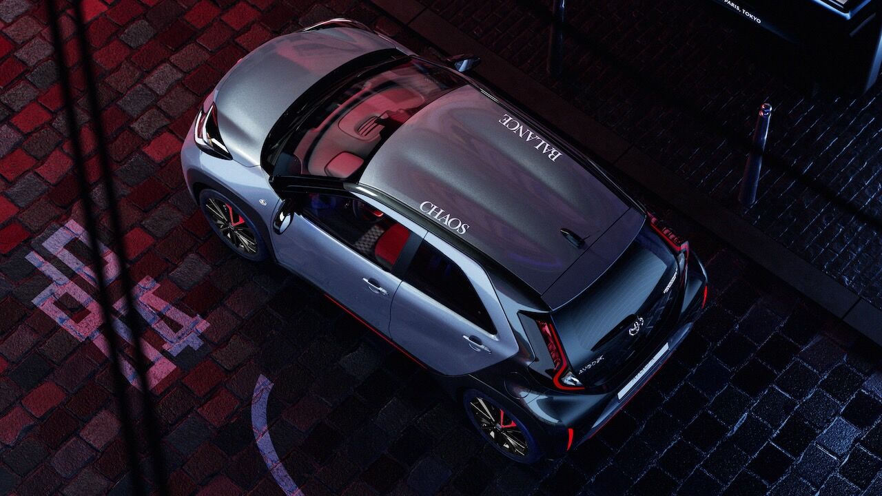 El objetivo de Toyota y de Undercover era el de dotar al coche de una combinación de contrastes que contrapusieran estilos como el punk y la alta costura o lo digital y lo analógico. Para presentarlo han utilizado un escenario semificticio de París llamado Tokio que también aplica el mismo juego de disparidad. Lo que se mantiene intacto en este ejemplar es su motor de tres cilindros y 998 cc, única opción disponible en la gama con sus 72 CV. Sí que se puede elegir entre caja de cambios manual de cinco velocidades o la de tipo CVT.