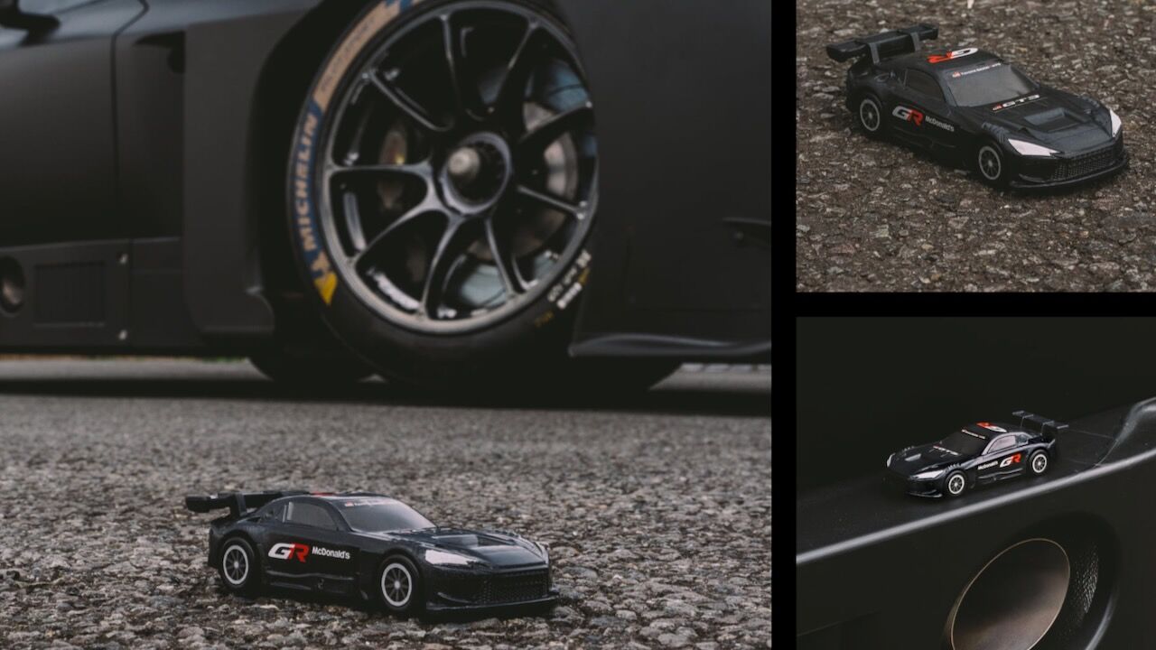 El protagonista de esta nueva campaña no es otro que el Toyota GR GT3, un prototipo de competición que ha sido transformado en un coche en miniatura por el fabricante de maquetas a escala Tomica. Este modelo coleccionable mantiene intacta la esencia del agresivo paquete aerodinámico y los escapes laterales de la versión real que competirá en los circuitos de todo el mundo y que ha inspirado incluso a una versión de producción bajo el nombre de Toyota GR GT. El vehículo se presenta adornado con los colores tradicionales de Gazoo Racing, combinando el negro, el rojo y el blanco para deleite de grandes y pequeños.