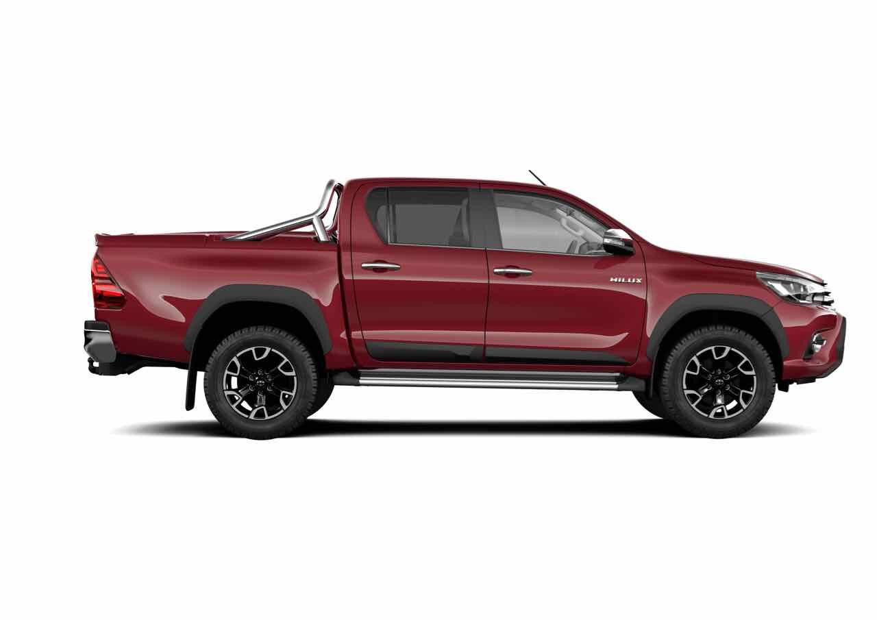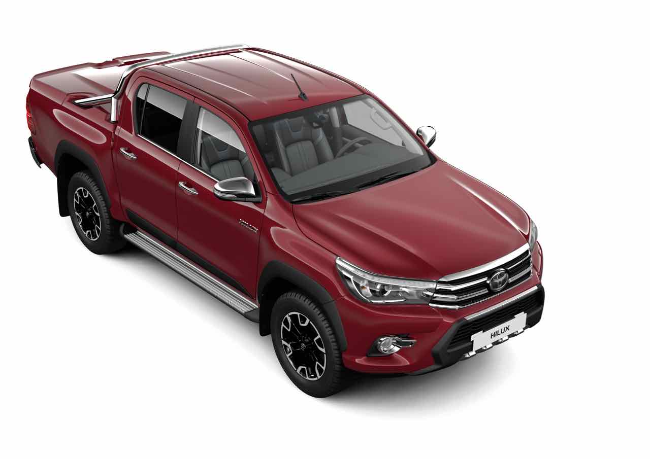 Además, Hilux puede montar dos tipos de hardtop (techo duro), uno sin ventanillas laterales, en color blanco sólido, con luneta tintada, ventana frontal desmontable y luz LED, y otro con ventanillas y en el mismo color que la carrocería, de plástico ABS doble capa, con toda la superficie acristalada tintada, luneta abatible y bloqueable, ventana frontal desmontable y luz LED.