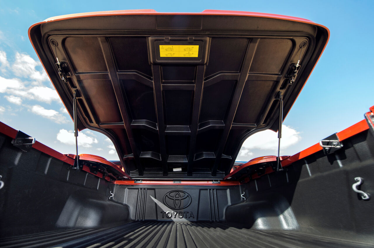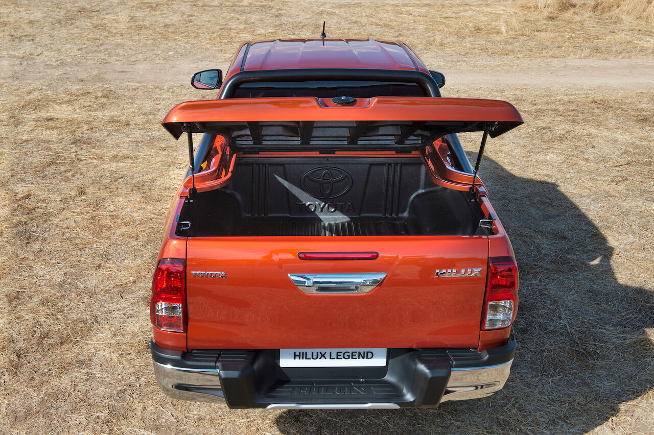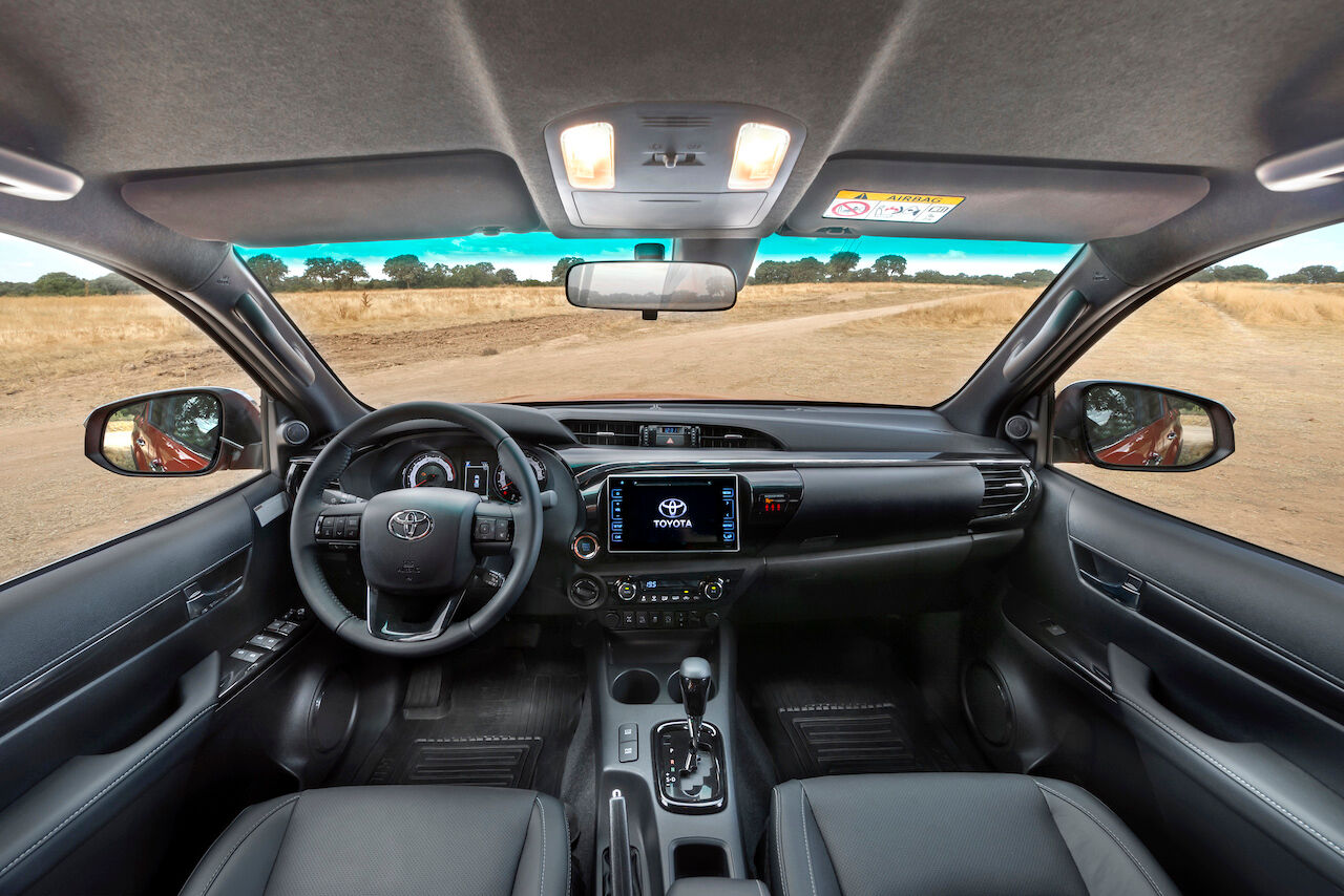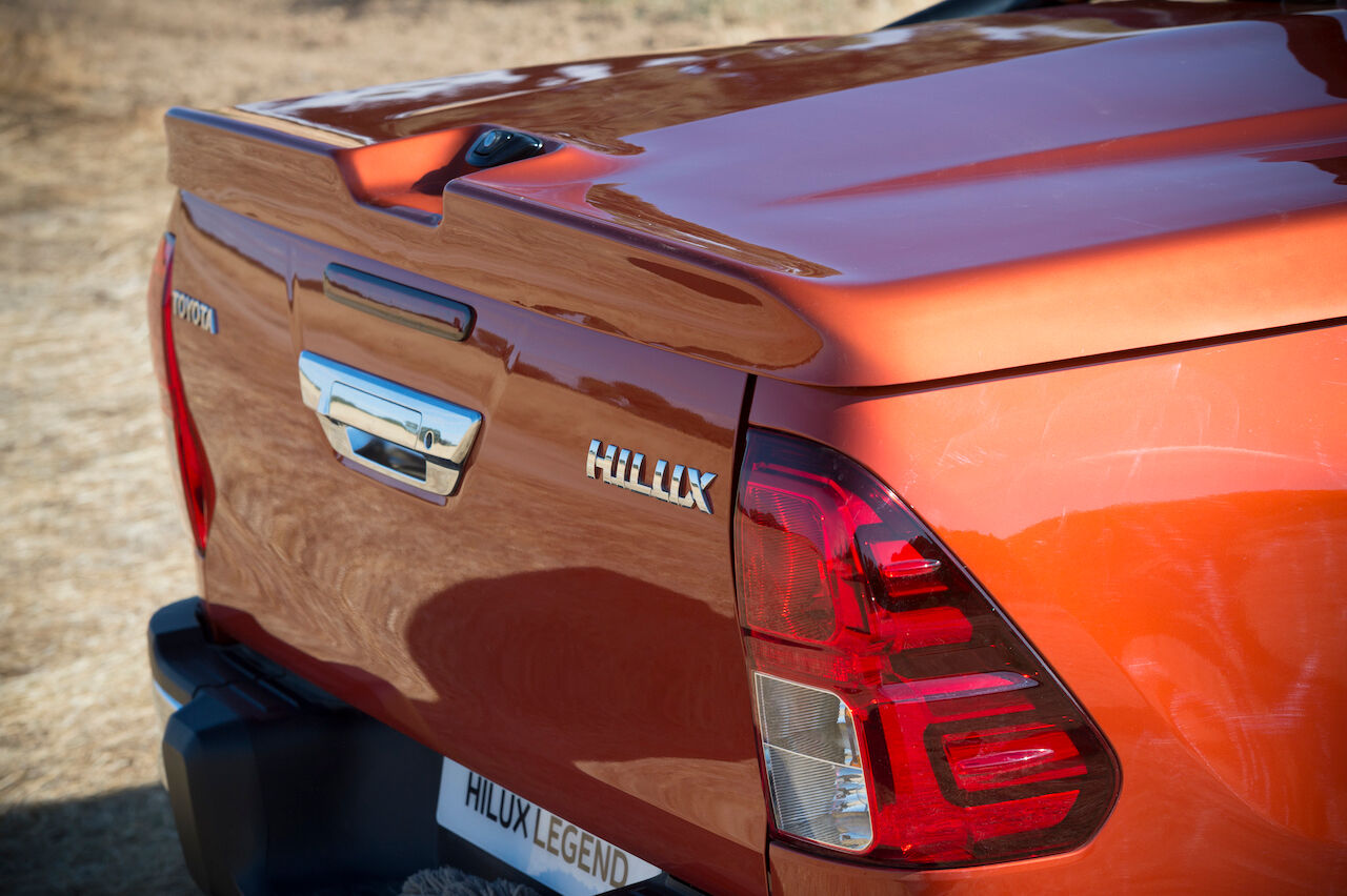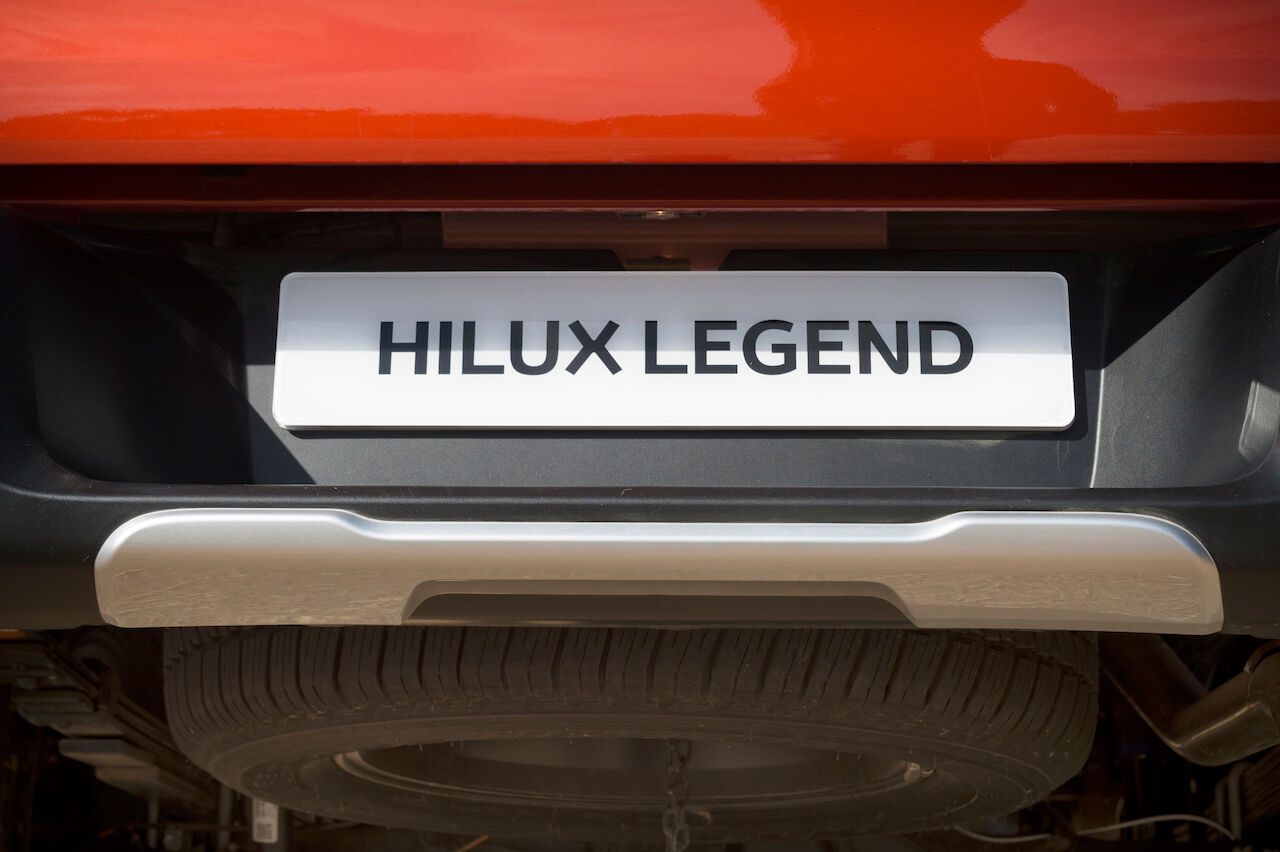 En el exterior también se aprecian otras novedades introducidas en la Hilux Legend y que tenían como objetivo acercarse un poco más a la Toyota Tacoma, al menos estéticamente. Por eso monta una parrilla frontal hexagonal, paragolpes específicos o antinieblas rediseñados. En el interior recibe un acabado negro piano, asientos de cuero y una instrumentación específica. El mando de apertura también es exclusivo de esta versión.
