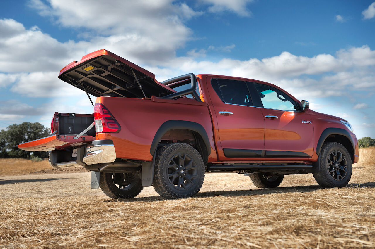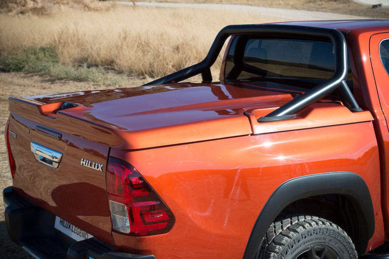 Aunque no podrán optar por el color Terracota que adorna su carrocería, que es exclusivo para la Toyota Hilux Legend Raider. Otro elemento que le sirve a esta versión para distinguirse es el Pack Raider, que incluye las barras antivuelco, protecciones inferiores, estribos laterales o pasos de rueda en color negro, además de una tapa rígida para cerrar la zona de carga en el color de la carrocería.