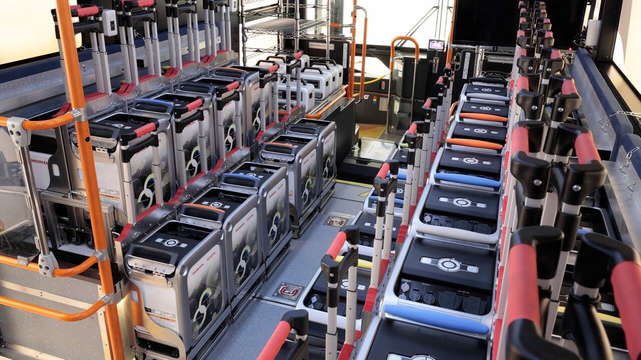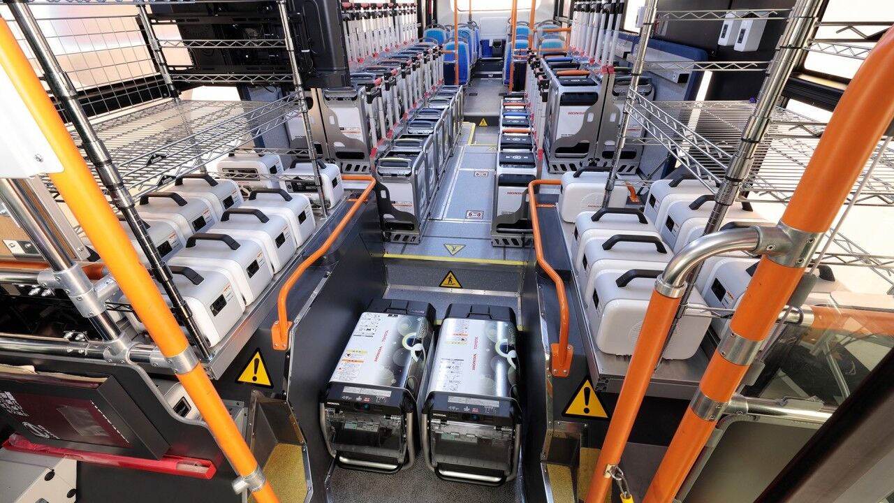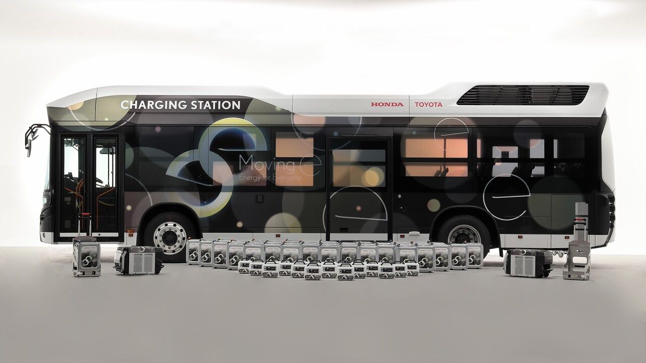 Toyota y Honda han unido fuerzas para crear un sistema de generación de energía móvil destinado a situaciones de emergencia. Dicho sistema consiste en un gran autobús con una pila de combustible como corazón capaz de transportar una gran cantidad de hidrógeno, dispositivos portátiles de salida de energía y, por supuesto, baterías. Bautizado como “Moving e”, puede suministrar electricidad en cualquier momento y en cualquier lugar, algo que resulta más que útil cuando se daña la red eléctrica.