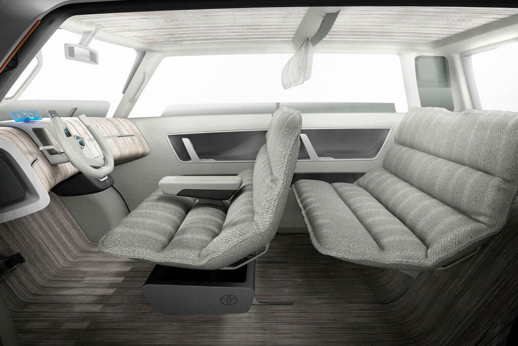 El sistema de porpulsión es eléctrico, con motores integrados en las ruedas (como en el Toyota i-Road). Y las baterías se ubican bajo el suelo, como en el Toyota iQ EV. Gracias a estas dos guías de diseño, se libera interior. Y con motores en las ruedas, puede disponer de tracción a dos o a las cuatro ruedas. La calefacción y el aire acondicionado funcionan con una bomba de aire de bajo consumo, que se combina con los asientos eléctricos calefactados para reducir al mínimo el consumo energético.