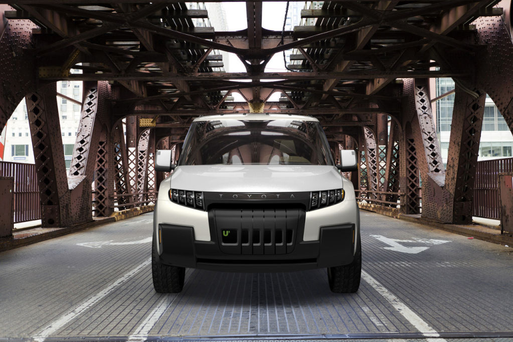 Aparte de su diseño futurista, el Toyota U2 Concept destaca por tener un aspecto robusto, remarcado por el uso de llantas y neumáticos de gran tamaño (aqui no se ha pensado en el coste de mantenimiento), suspensión sobreelevada y el uso de molduras plásticas en pasos de rueda, prominentes paragolpes… una serie de recursos que lo acercan a la línea de los SUV actuales. El techo desmontable (que permite cargar objetos muy largos) y el portón abatible aportan soluciones ingeniosas para cargar cómodamente el vehículo, ya que el mismo portón puede utilizarse como rampa. Es una de esas ideas que no entiendes por qué no se le ocurrió a alguien antes.