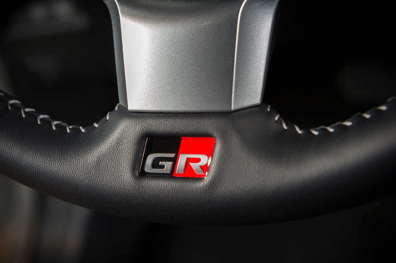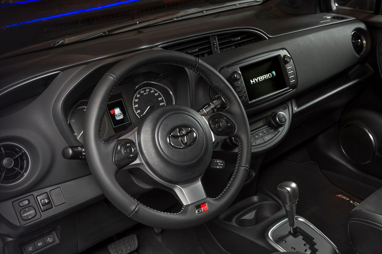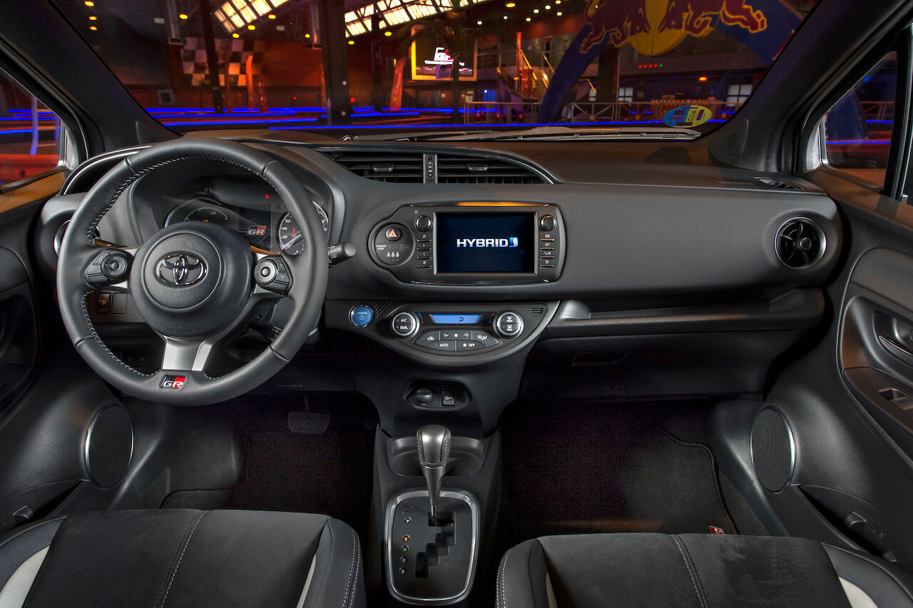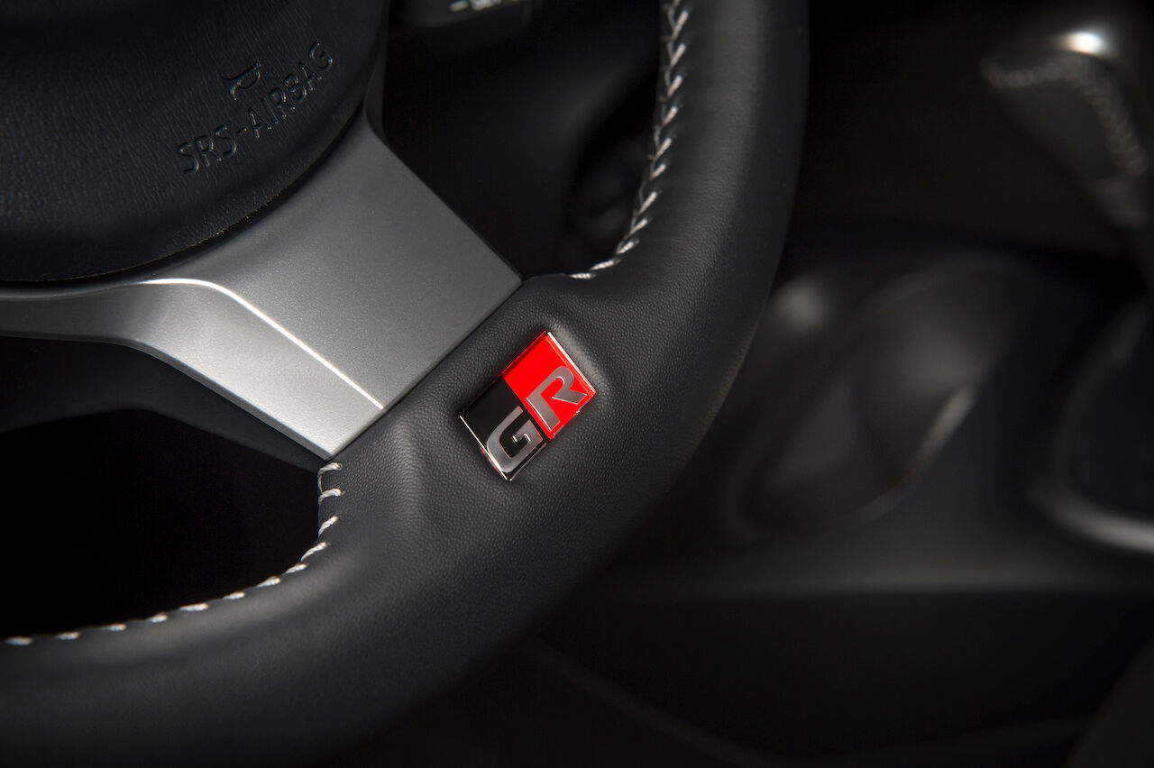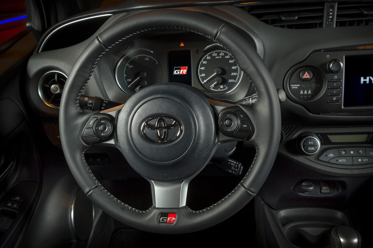 Si pasamos al interior encontramos también algunos elementos deportivos bastante efectivos. El primero es el volante, exactamente el mismo que en Yaris GRMN y en Toyota GT86. Lo segundo son los asientos deportivos con tapicería en Ultrasuede negro y costuras en blanco, que recibe el anagrama GR. Ese logo también está presente en las alfombrillas o en la instrumentación cada vez que es arrancado. Para completar hay molduras en cromado brillante que hacen contraste.
