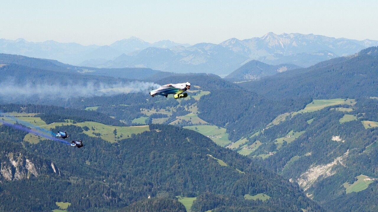 Para el vuelo inaugural del traje aéreo electrificado, Salzmann voló en helicóptero junto con otros dos pilotos sobre las cimas de las montañas austriacas, a 3.000 metros de altura. Después del salto, los tres volaron en formación en dirección a un macizo montañoso. Con la ayuda del propulsor eléctrico, Salzmann aceleró más rápido y pudo cruzar la cima en un vuelo empinado. Después de una curva más, se encontró con ellos planeando alrededor de la montaña, abriendo finalmente sus paracaídas para aterrizar en el destino acordado.