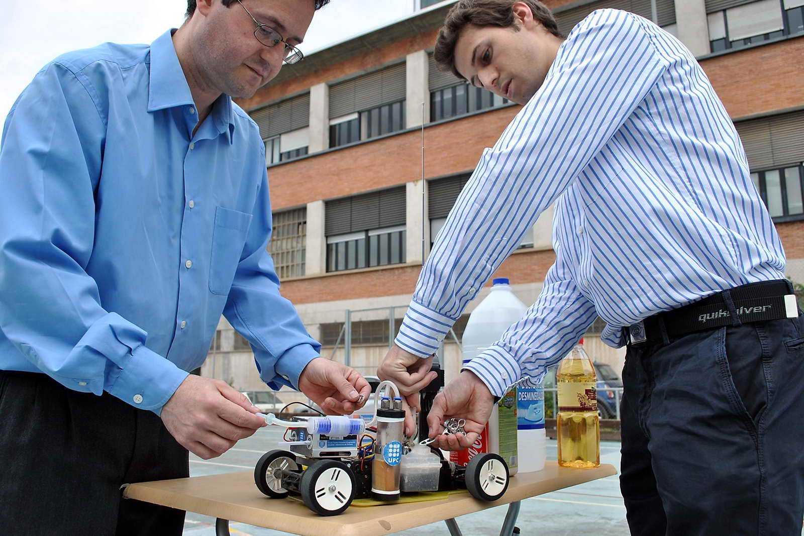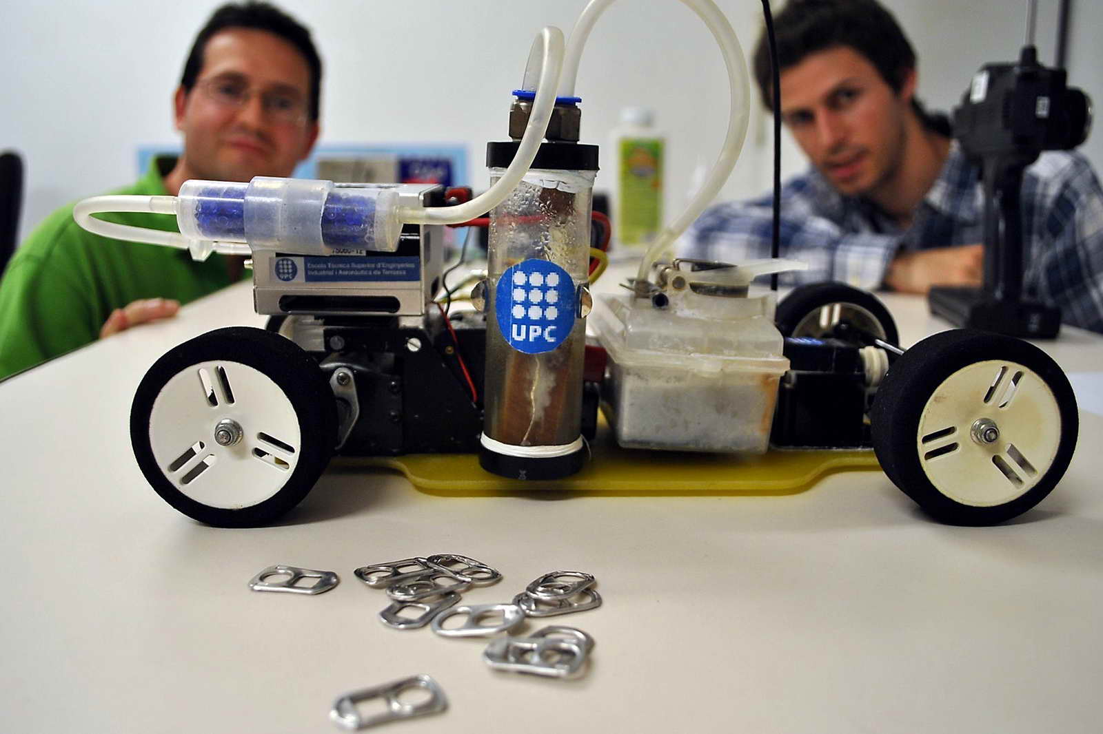Pues bien, tomando como inspiración la película, Aleix Llovet y Xavier Salueña han diseñado su propio “condensador de fluzo” y lo han montado en un pequeño coche de radio-control, siendo el primero de este tipo que funciona con una pila de combustible alimentada por residuos de aluminio (en este caso anillas de latas de refresco) y agua, usando sosa cáustica doméstica como catalizador. Como no podía ser de otra forma, lo han denominado dAlh2Orean, un acrónimo en donde convive el símbolo del aluminio, del agua y la marca De Lorean. El vehículo ya ha sido patentado por la UPC.